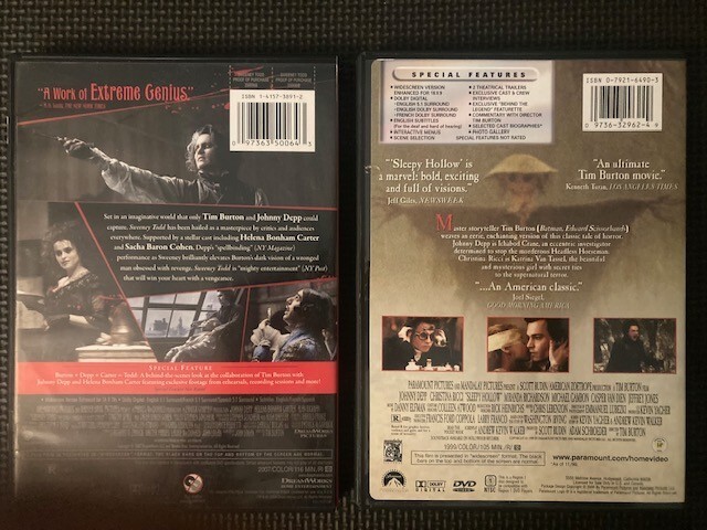 Johnny Depp Lot of 2 DVDs Sleepy Hollow /Sweeney Todd