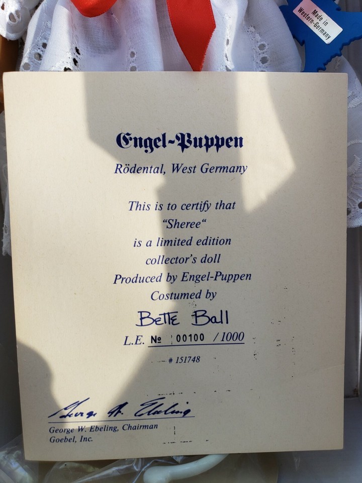 Engel-Puppen of Rodental, West Germany limited edition collector's doll