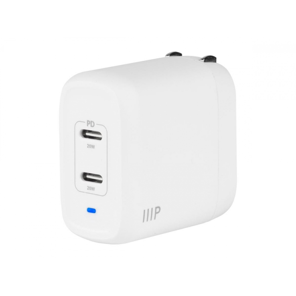 MONOPRICE USB-C CHARGER, 40W 2-PORT PD GAN TECHNOLOGY FOLDABLE WALL CHARGER WHIT