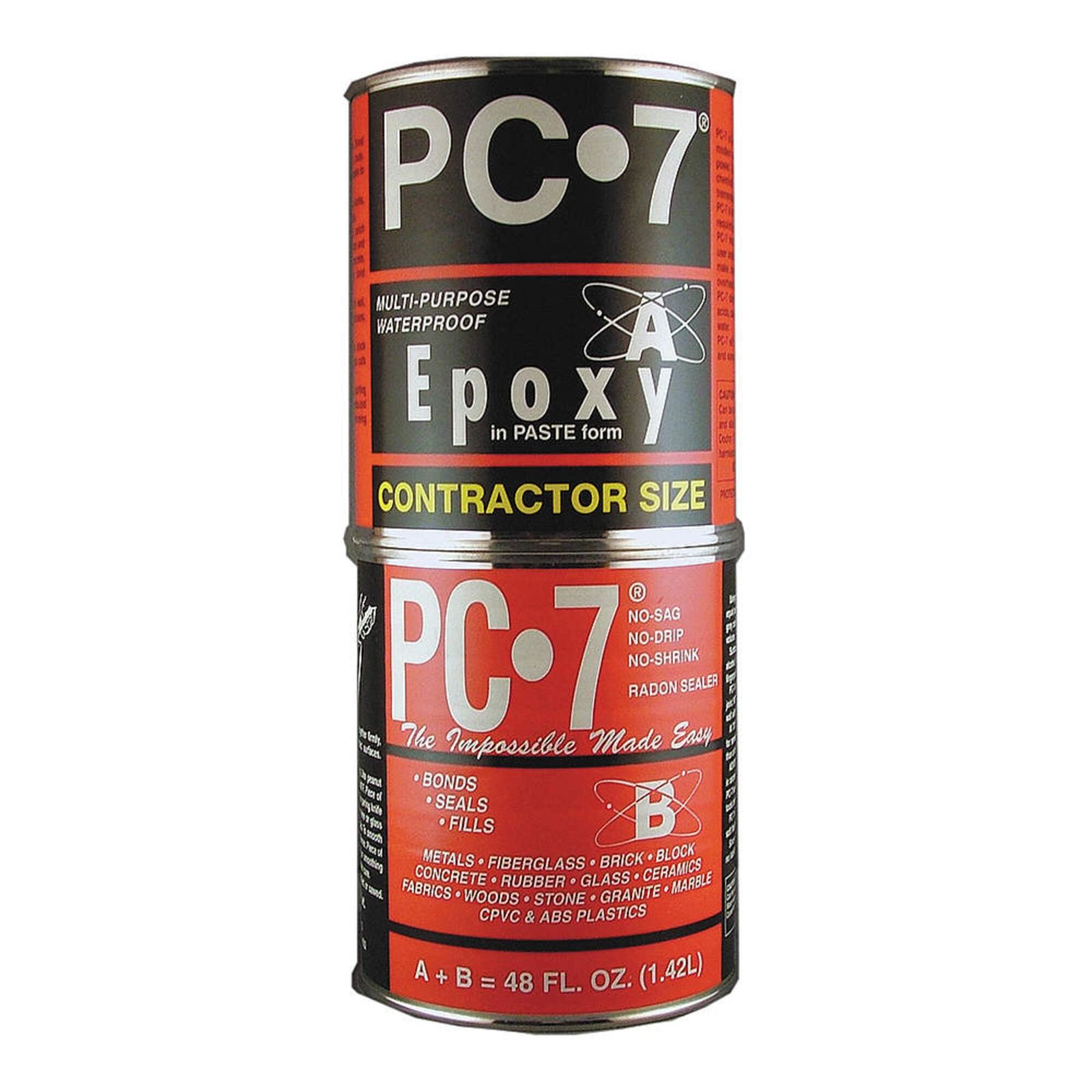 Product description: Use this PC Products 48 oz. PC-7 Paste Epoxy bonding, sealing and filling a wide variety of materials. The epoxy cures in 12 - 24 hours and can be drilled, machined, tooled and painted. Multi-purpose paste epoxy bonds to most surfaces. Non-drip paste allows for vertical and overhead application. Adhesion level: High. Assembled Depth: 5". Assembled Height: 10". Assembled Width: 5". Drillable: Yes. Indoor/Outdoor. Moisture Resistant: Yes. Product Depth: 4.5". Product Height: 9.75". Product Width: 4.5". Recommended surfaces: Brick,Ceramic,Concrete,General Purpose,Glass,Metal,Stone,Tile. Sandable: Yes. Solvent resistant: Yes. Stick diameter: 4.5". UV/sunlight resistant: No.