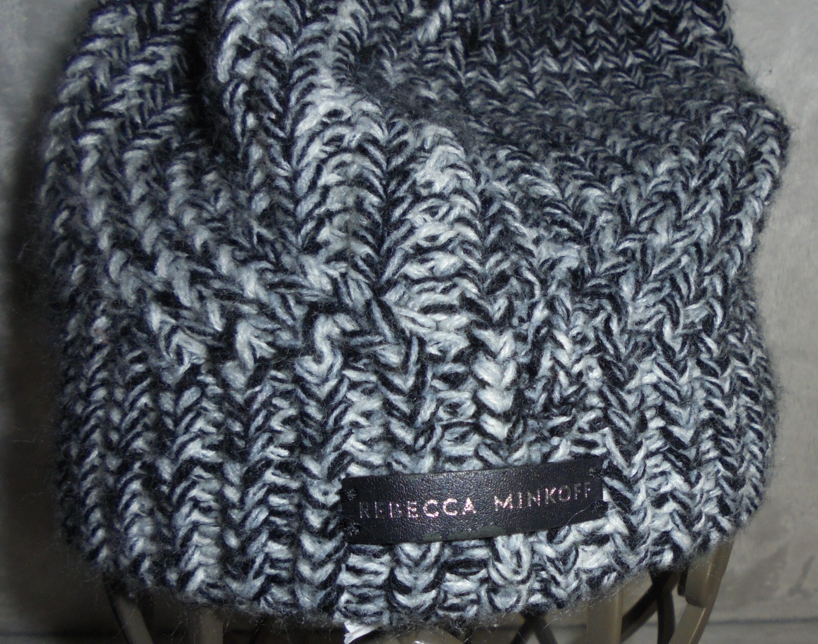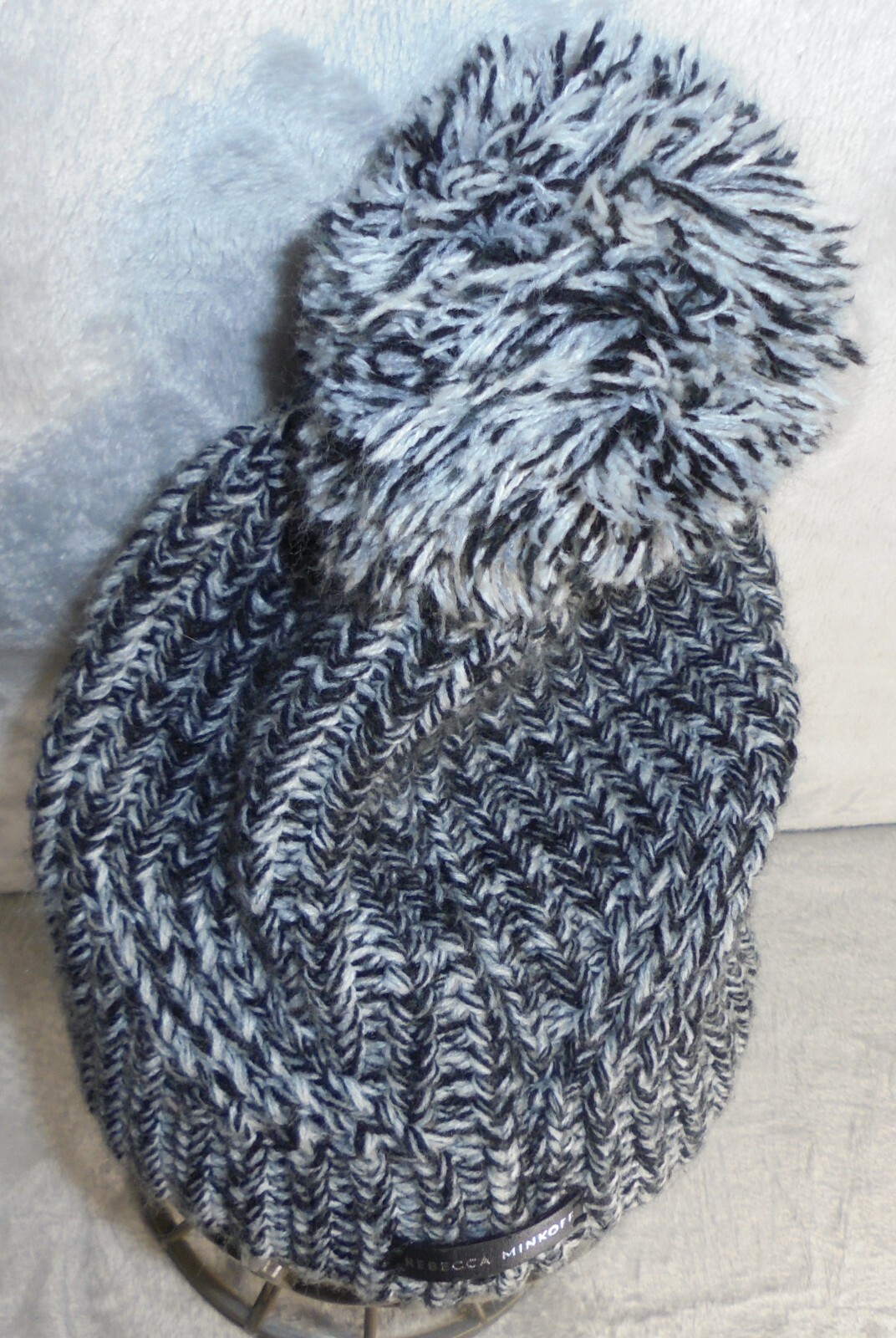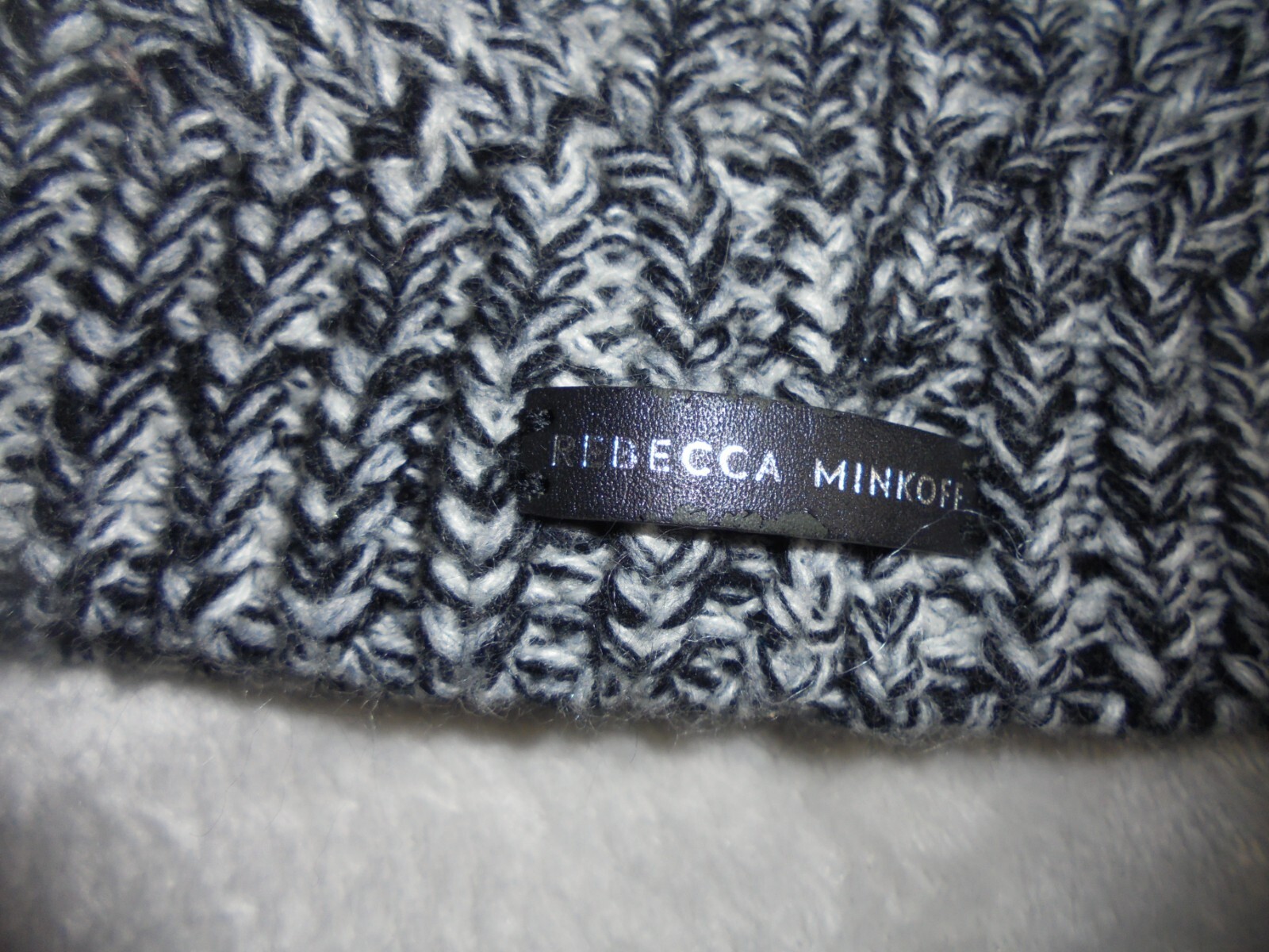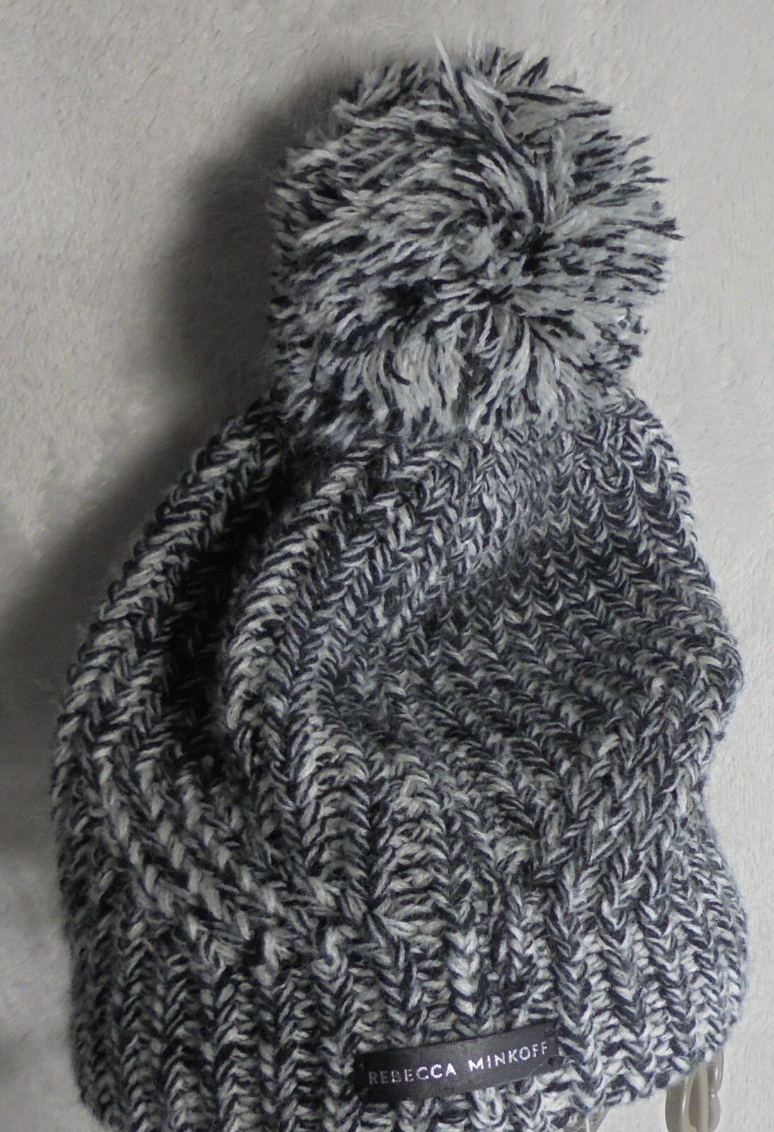 Rebecca Minkoff Beanie Womens One Size Black White Knit Pom Pom Acrylic Hat