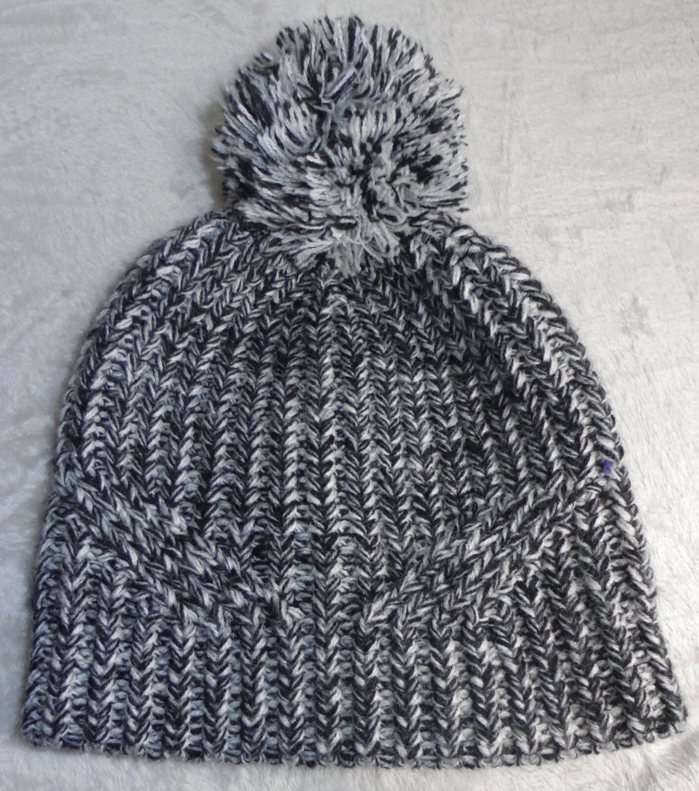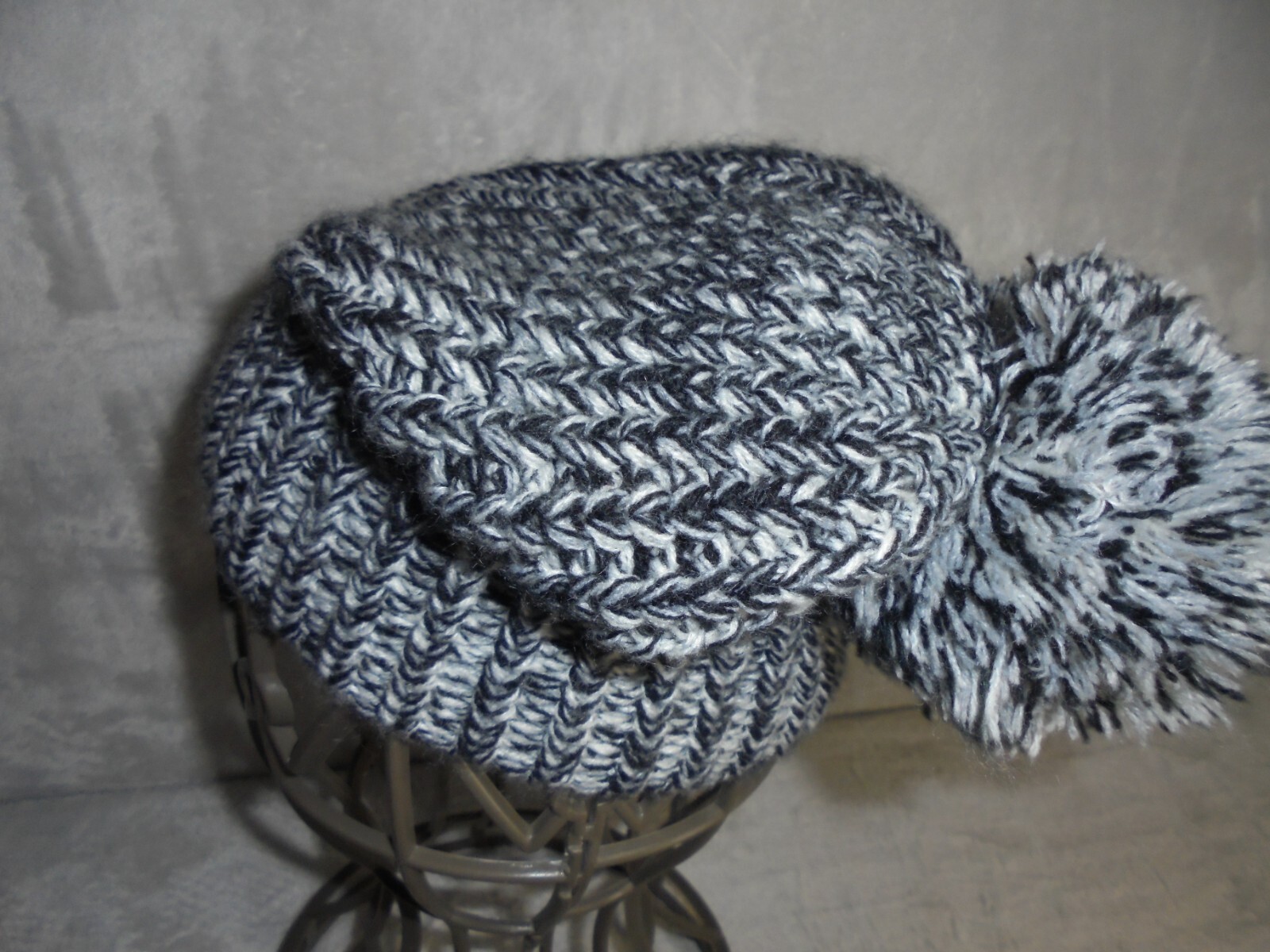 Description: Black and white woven hat/cap. Pom pom. Hand wash.