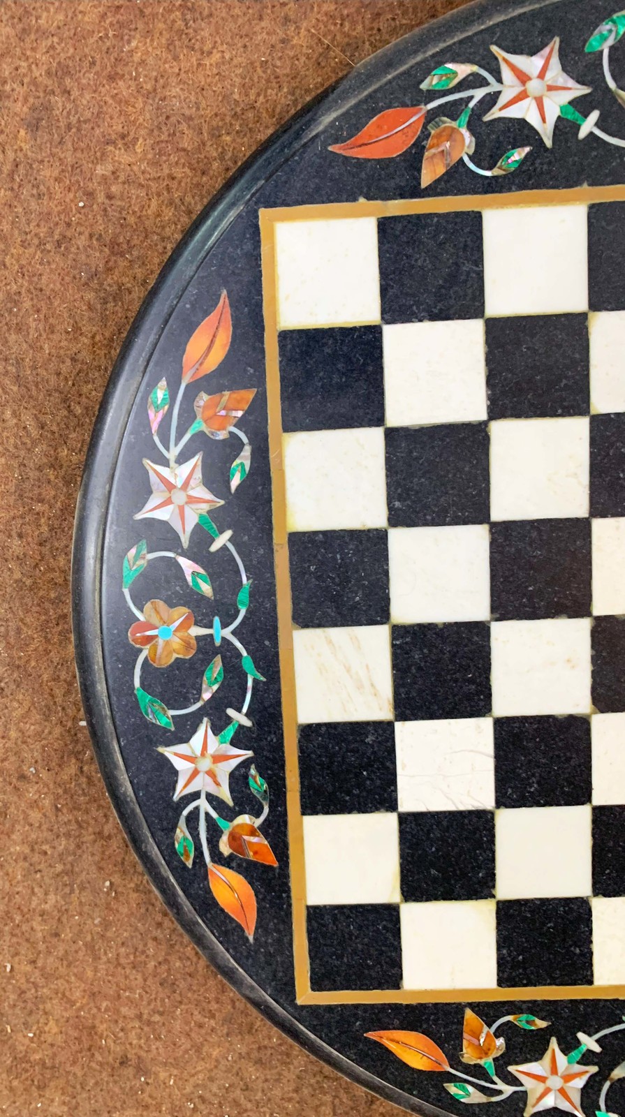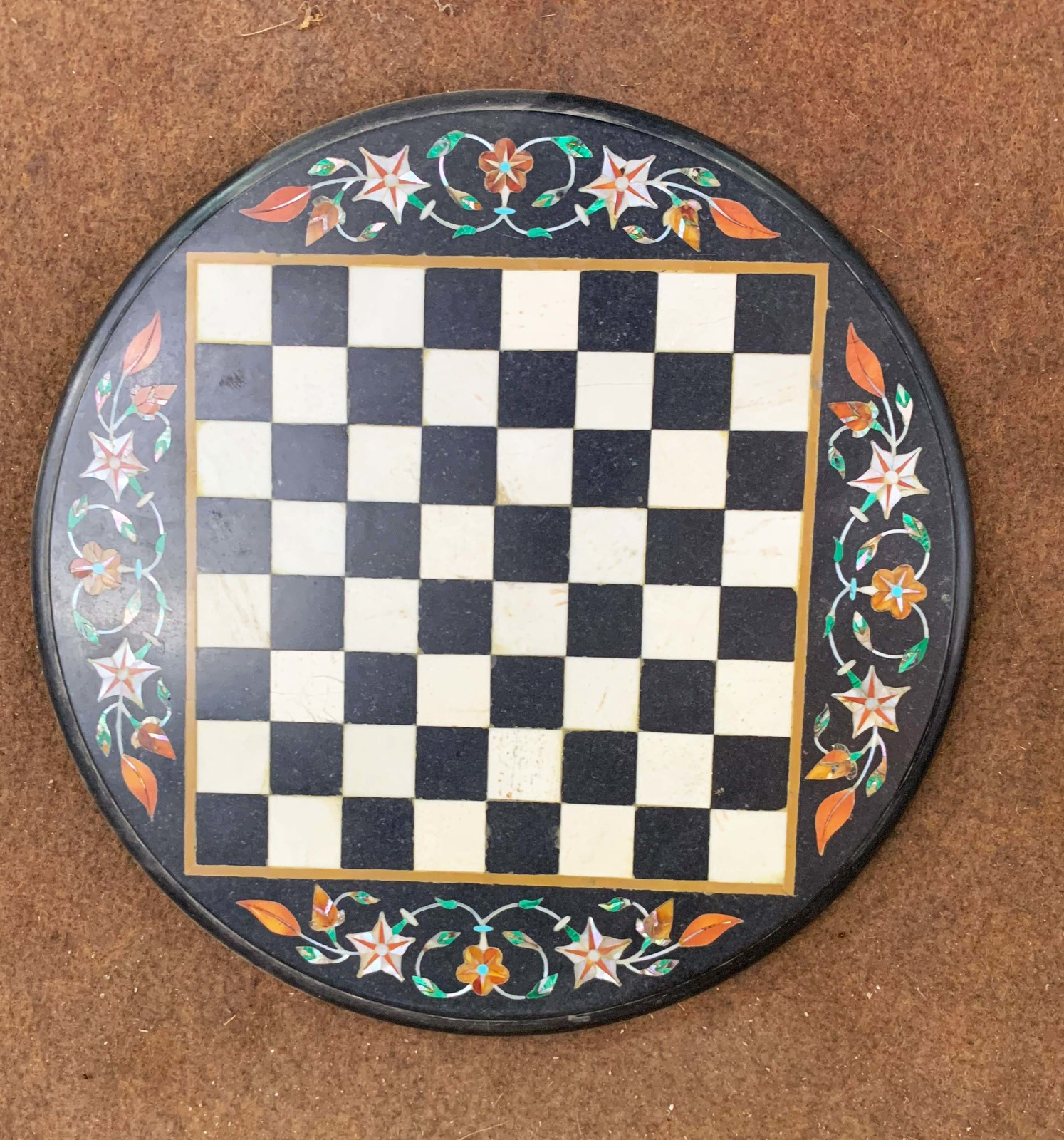 12" Round black Marble table top Petra Dura & Semi Precious stone
