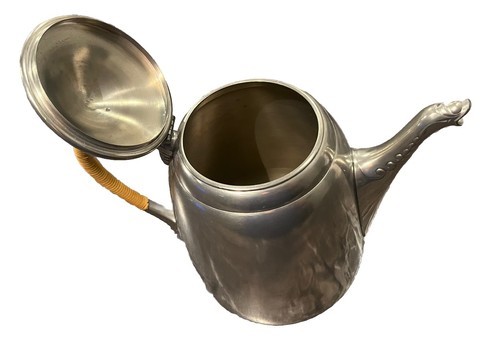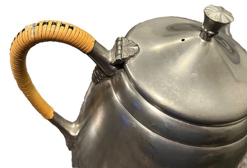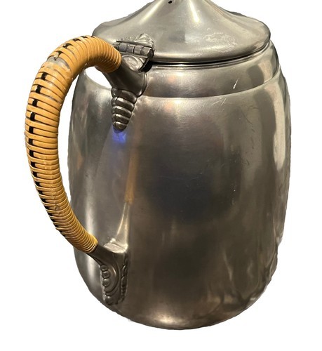 Royal Holland K.M.D. Tiel Pewter Daalderop Rattan Handle Tea Pot Pitcher Carafe