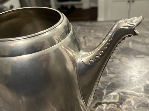 Good condition!! Has the fancy decorations on the handle and spout. Very nice!! Clean!!!