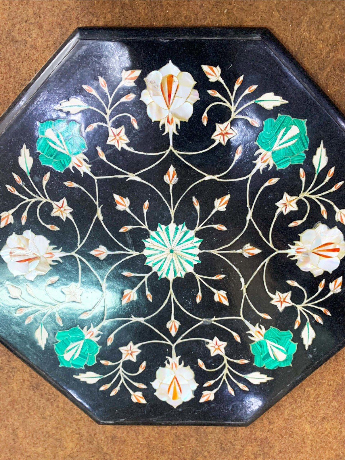 12" Black Marble Semi Precious Mother of Pearl Gemstone Handmade Work