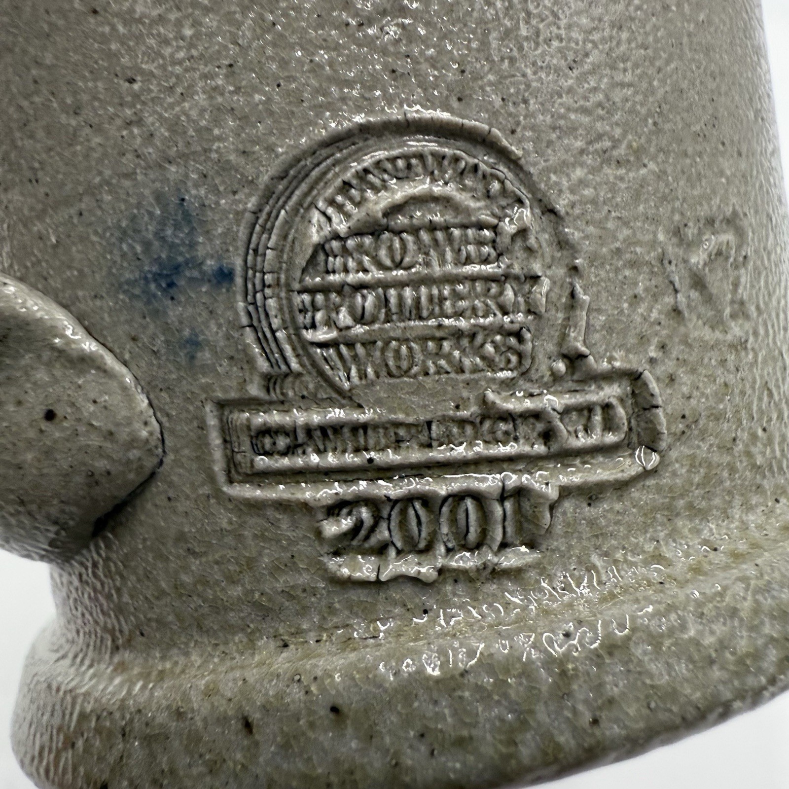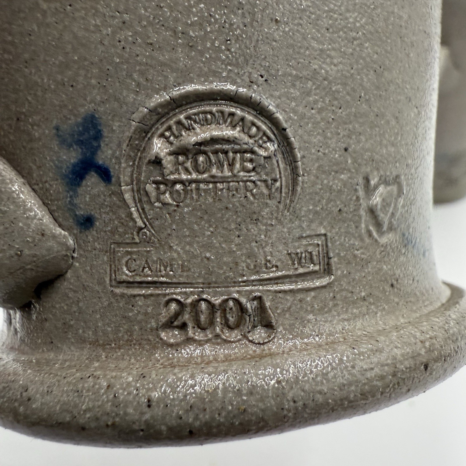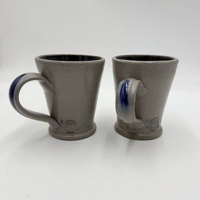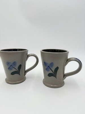 Rowe Pottery Works Salt Glazed Blue Flower Mug Coffee / Tea Cup - 2001 Vintage