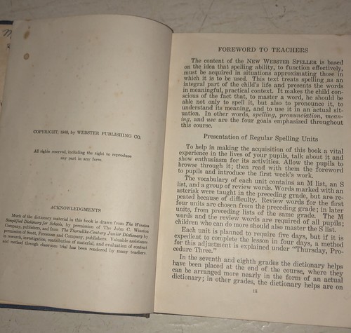 1940 New Webster Speller Part 2 Dictionary Textbook Hardcover Book Rare.