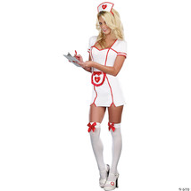 Dress with attached apron with nurse hat. Stockings, clipboard, and pen not included.