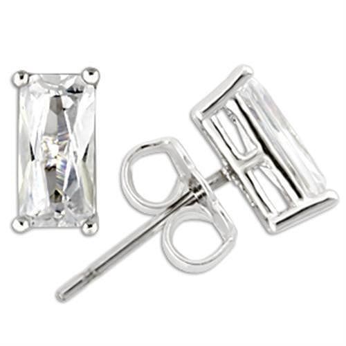 0W162 - Rhodium 925 Sterling Silver Earrings with AAA Grade CZ in Clear