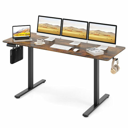 Electric Standing Desk with 3 Memory Heights and 2 Hanging Hooks and Cable Holes
