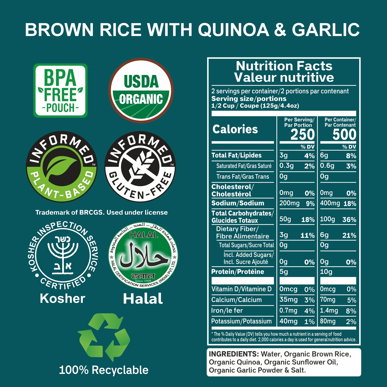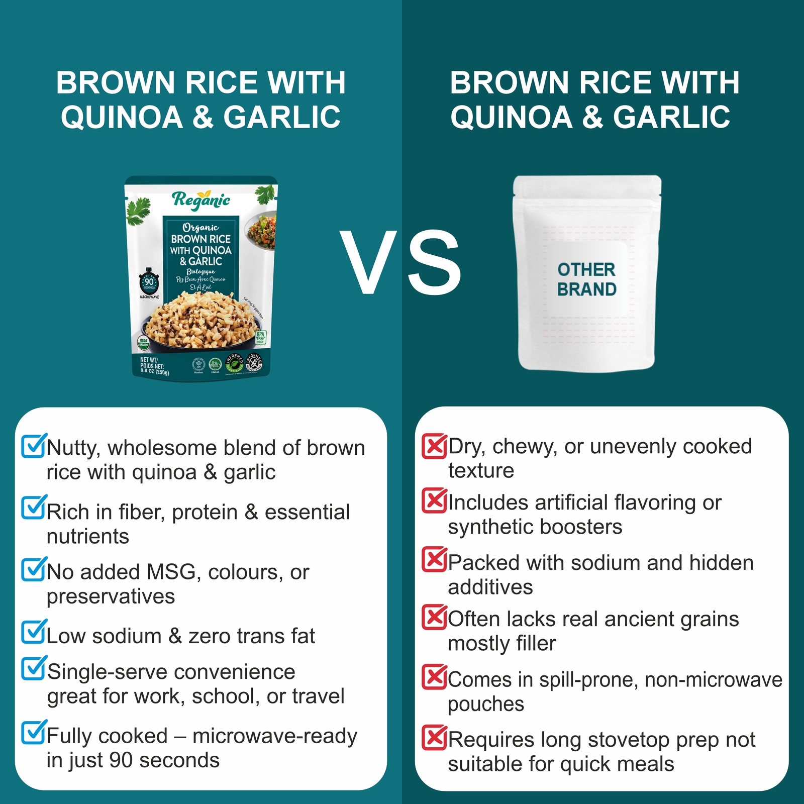 Regganic Organic Brown Rice with Quinoa & Garlic, Ready to Eat, Pack of 6,8.8 oz