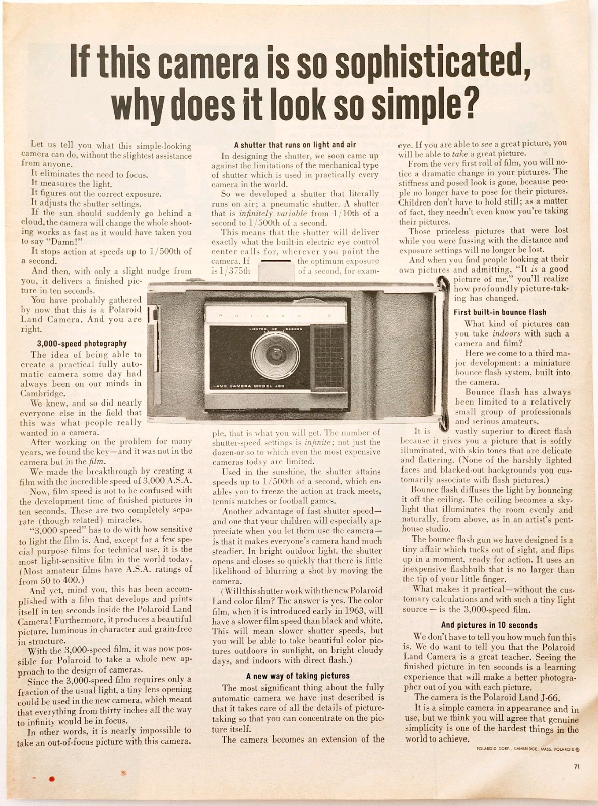 1962 Polaroid Land Camera Model J-66 Advertisement Vintage Photography DWII29