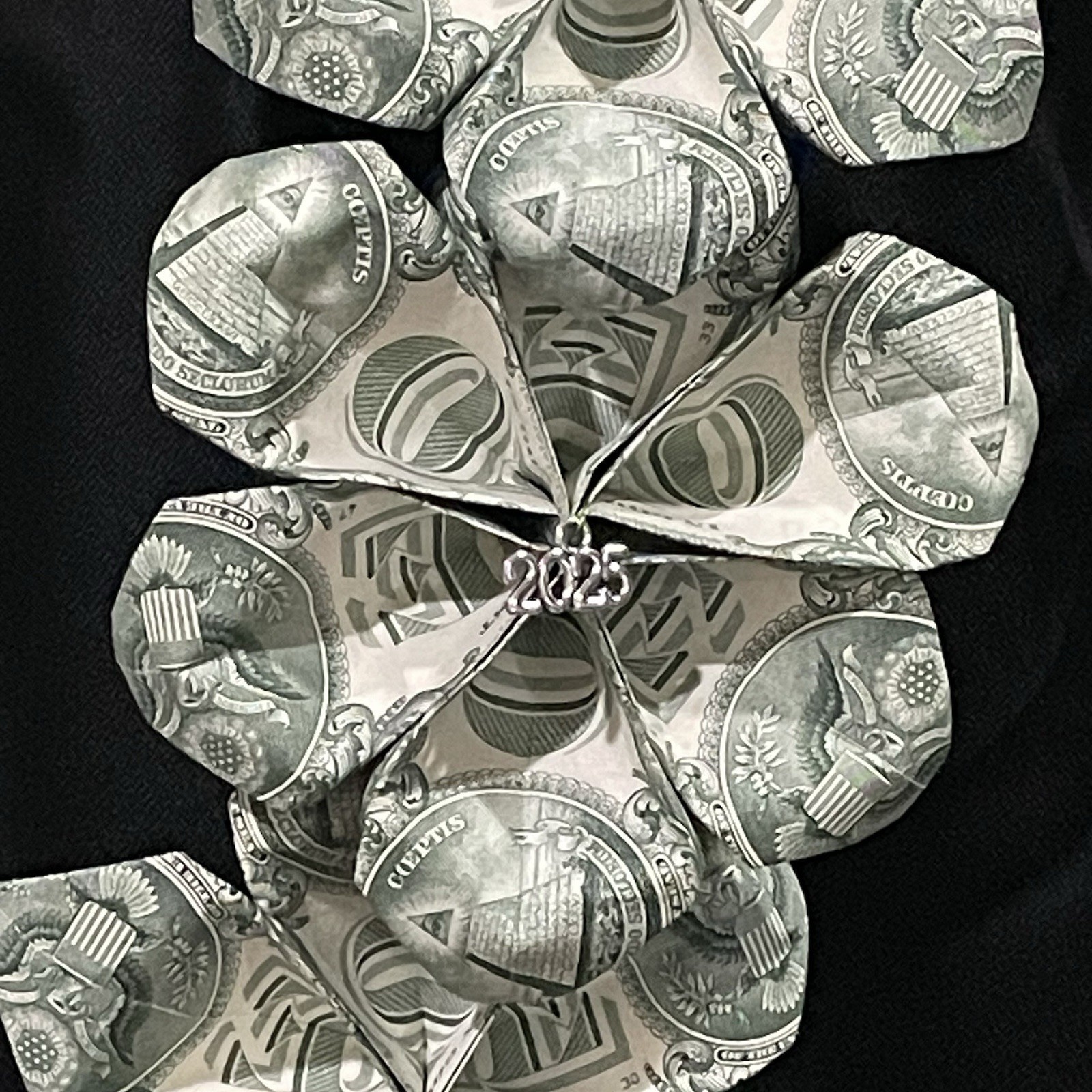 Makes a beautiful keepsake and looks beautiful in graduation photos! If the recipient desires, the flower folded bills can be removed.