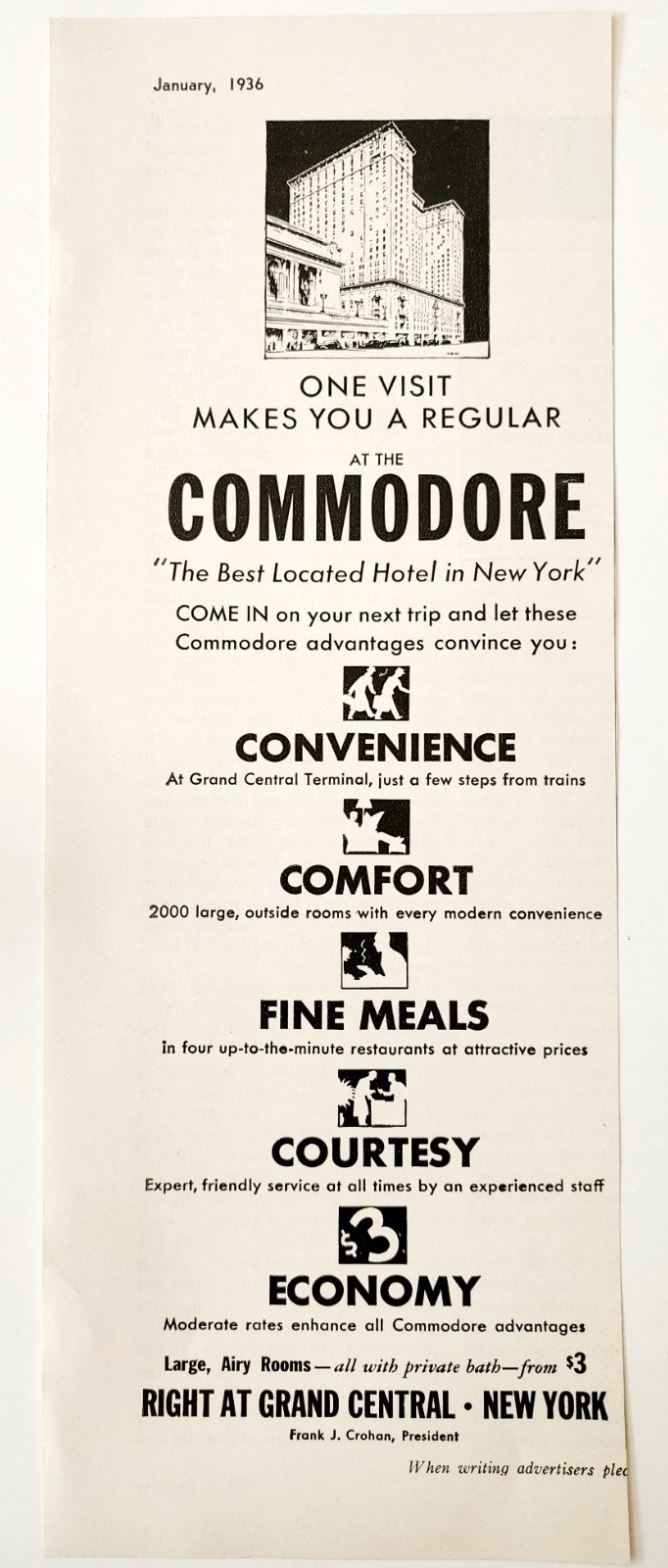 1936 Commodore Hotel Advertisement New York and 39 similar items