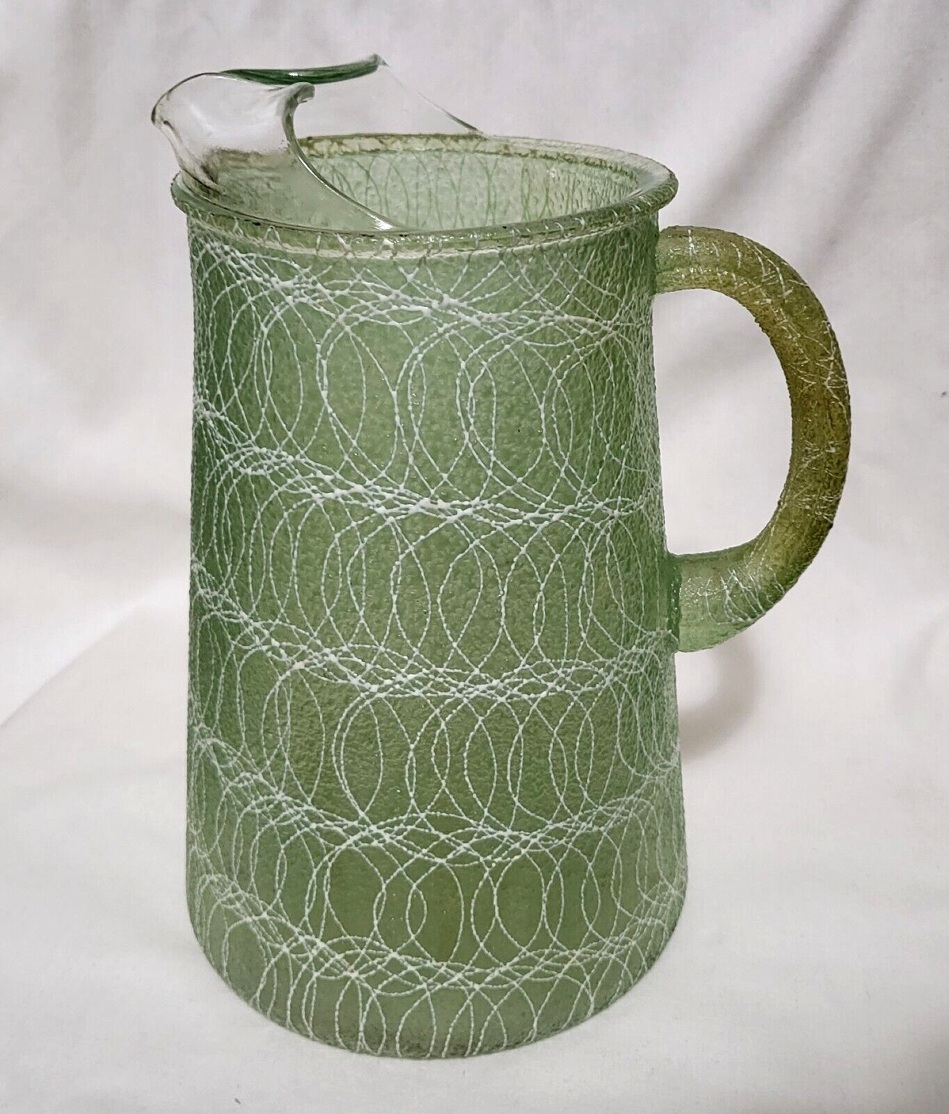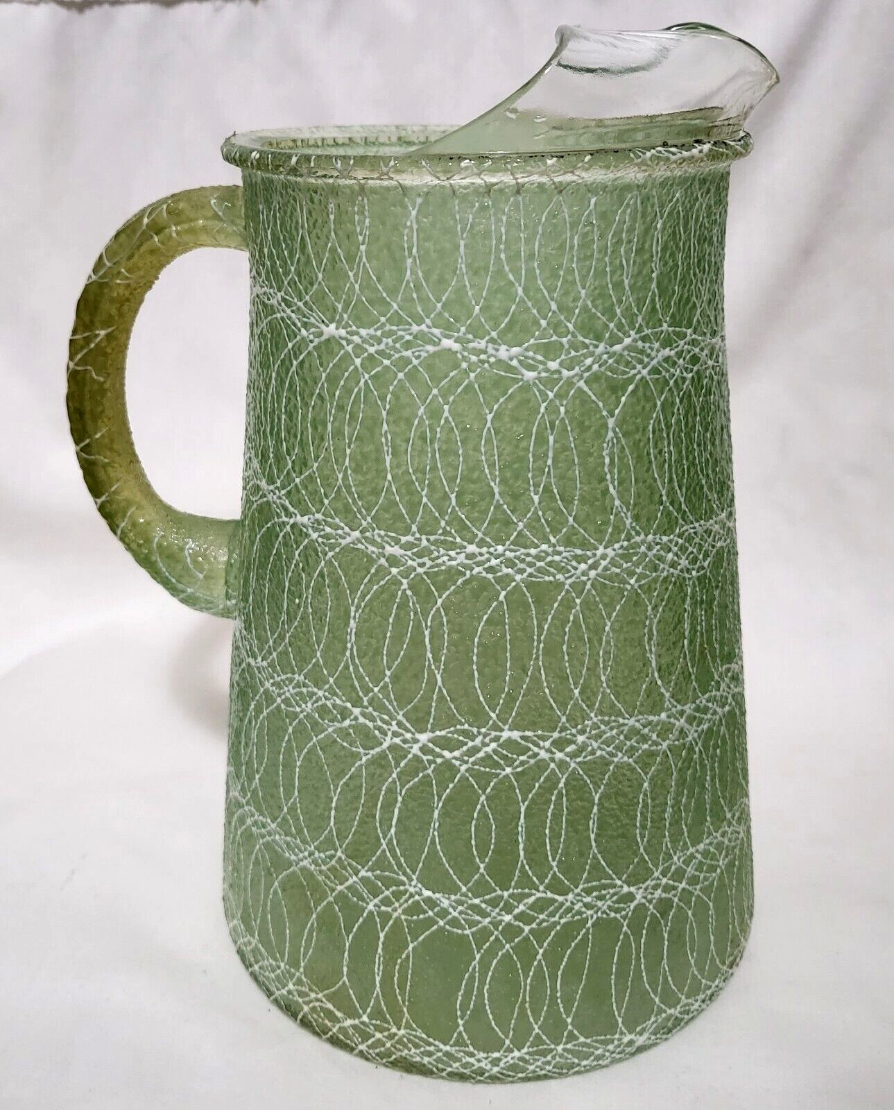 Mid-Century Atomic Avocado Green Spaghetti Drizzled Patterned Pitcher