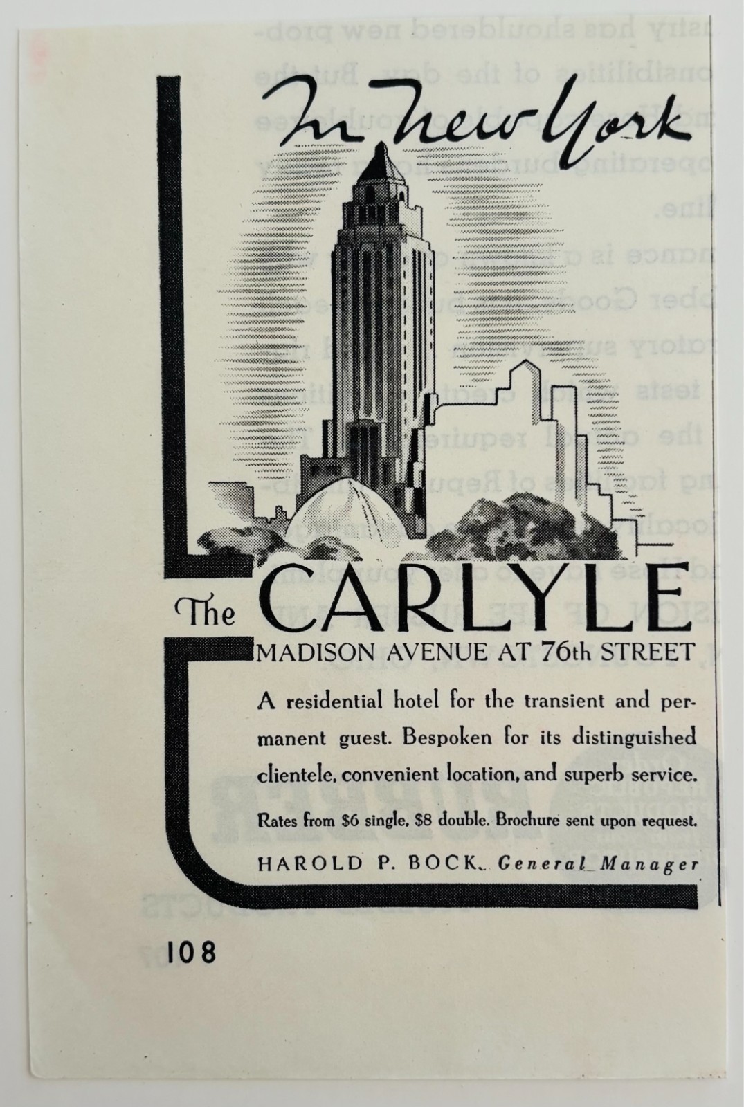 1940 Carlyle Residential Hotel Advertisement and 39 similar items