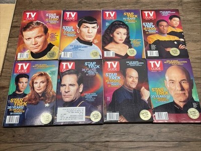 This is for a lot of 8 TV Guide "35 Years of Star Trek", collectible covers. All are in good displayable condition, with some wear and tear, particularly around the corners and edges, due to age and storage. Please see pictures for condition details and measurements.