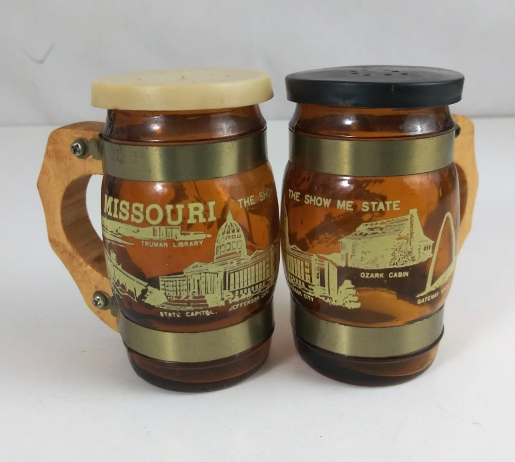 This is for a Vintage Gateway Arch Missouri Souvenir Barrel Mug Salt Pepper Shakers.