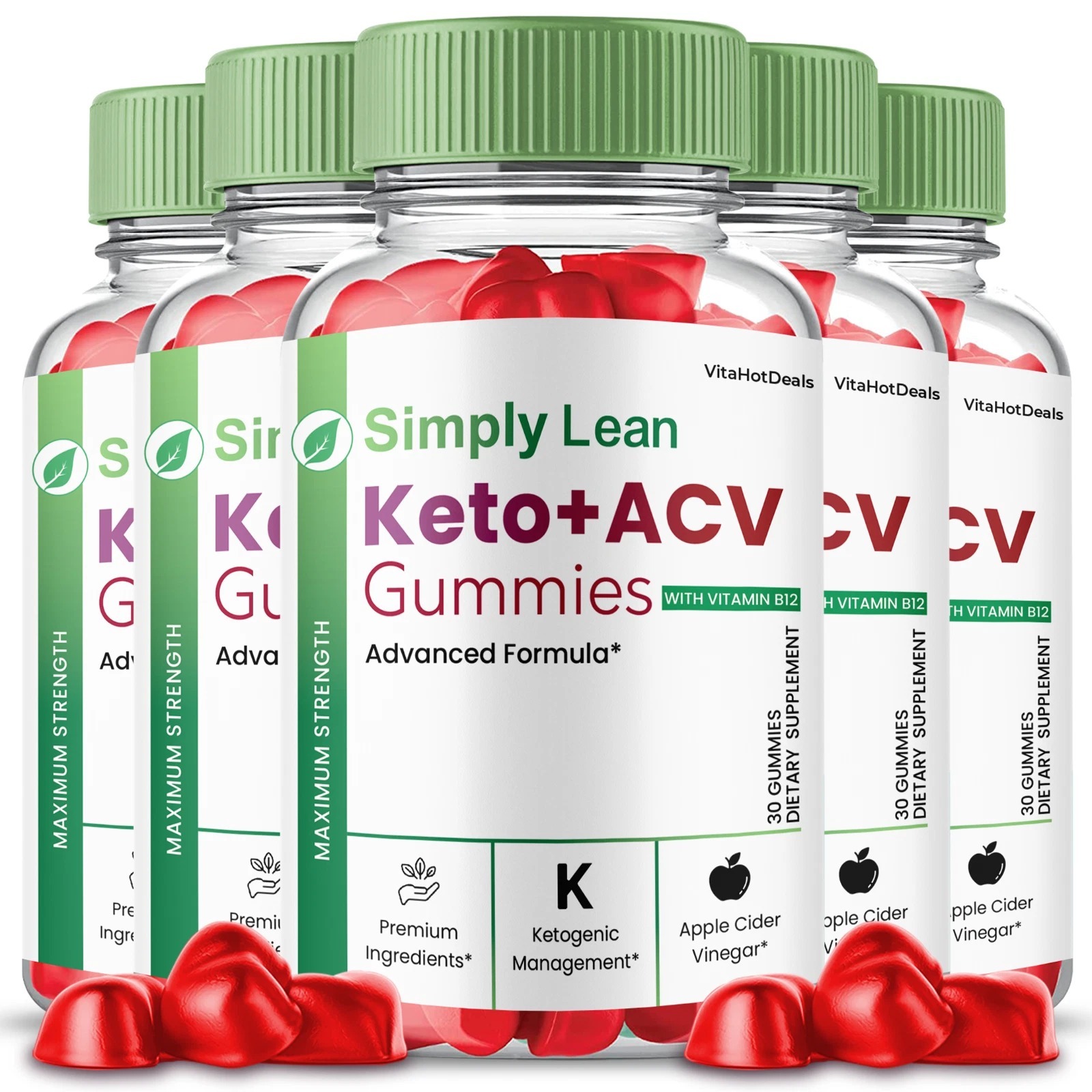 5 Pack Simply Lean Keto ACV Gummies Max Strength with B12 Pomegranate Beet Root
