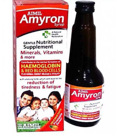 Amyron is a special formula for all ages with vitalizing herbs which contributes to reduction of tiredness fatigue by Ashwagandha, Shatavar, Mulsi Wheat Germ oil. Amyron supplements natural iron from arbi leaves, Punernava Mandoor, Lauh Bhasam etc. which helps improve haemoglobin level RBC synthesis. AMYRON also contains papaya leaves, flax seeds, sunflower seeds, fenugreek, raisins etc. contributes to normal energy release. Basis for health maintenance needs to have activity restoration, which is accomplished by Amyron. Amyron syrup is available in delicious taste pineapple flavour designed to be gentle on stomach, easily digestible start work instantly.