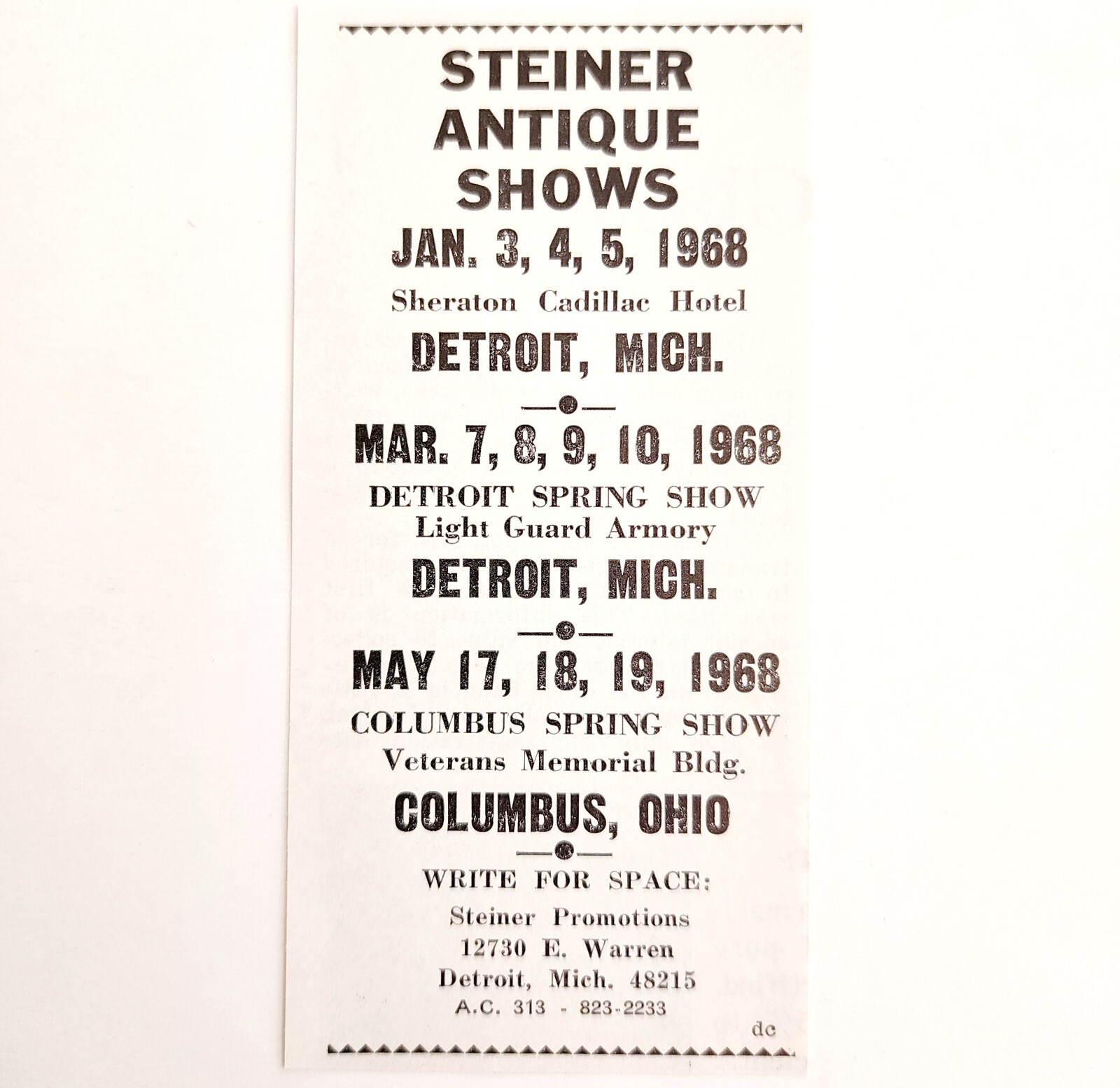 1967 Steiner Antique Shows Advertisement Detroit Columbus 1968 Event F13B