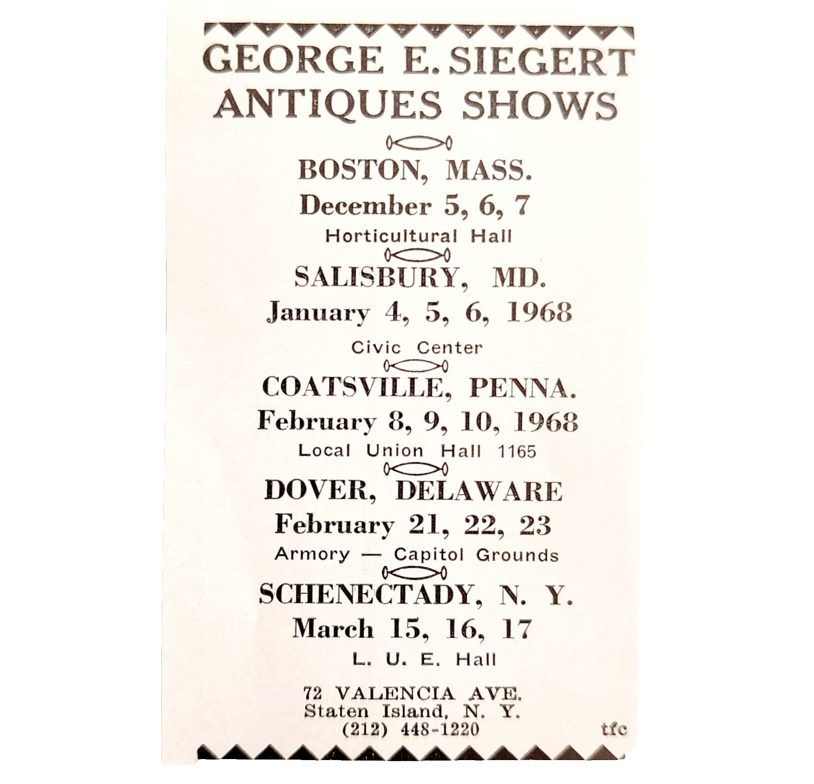 1967 George Siegert Antique Shows Advertisement MA MD PA DE NY 1968 Event F13B
