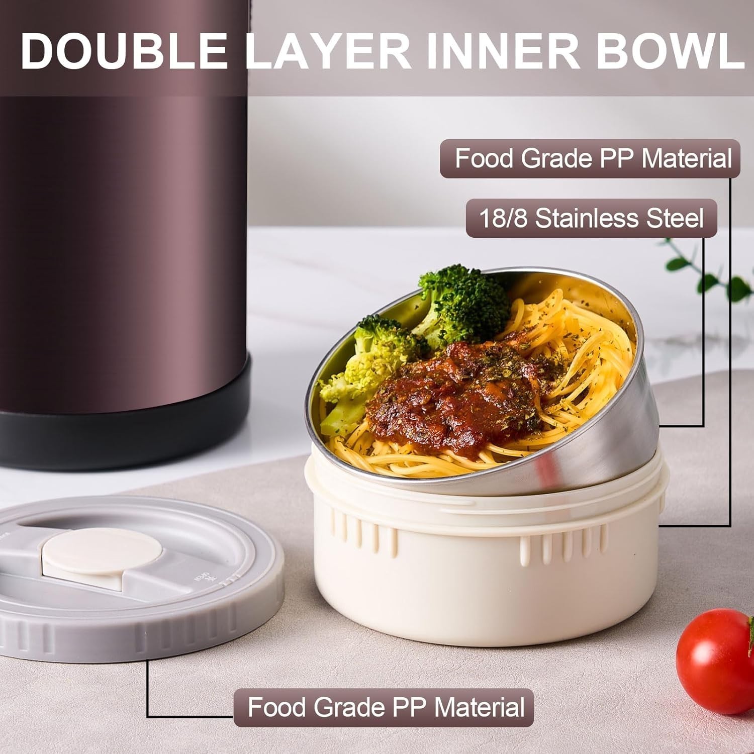 This stainless steel insulated lunch box has a capacity of 2.6L and comes with a wide mouthed container, making it perfect for storing various types of food. This set includes a lid, and the lunch box comes with a screw cap for easy access. This lunch box features a stylish modern solid color design, perfect for teenagers who go out. Made of durable stainless steel, easy to clean, very suitable for daily use.