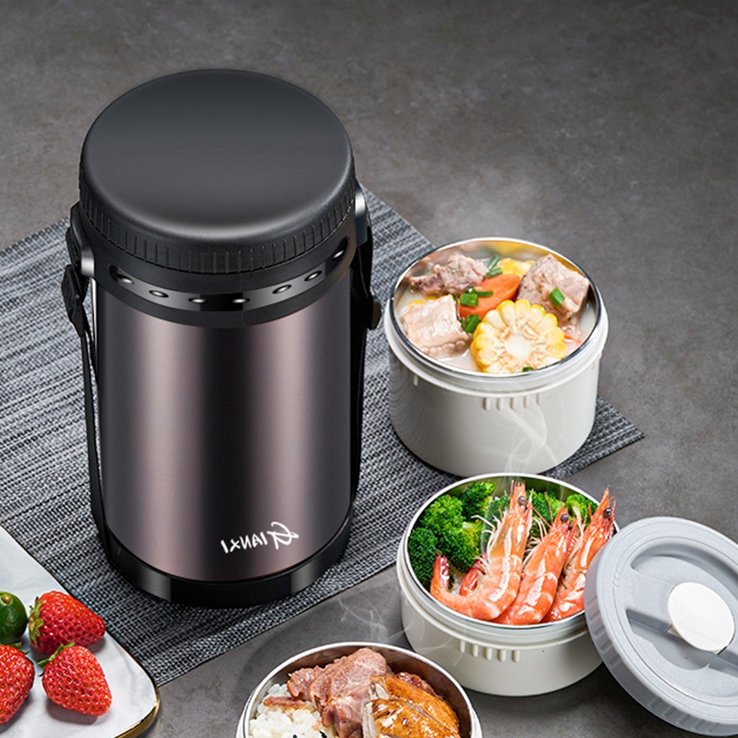 Stainless steel multifunctional multi-layer insulated lunch box 2.6L