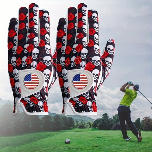A SUPERB QUALITY GOLF GLOVE WITH A STRONG MAGNET ON THE CLOSURE FLAP WHICH WILL TAKE ANY FLAT GOLF BALL MARKER.