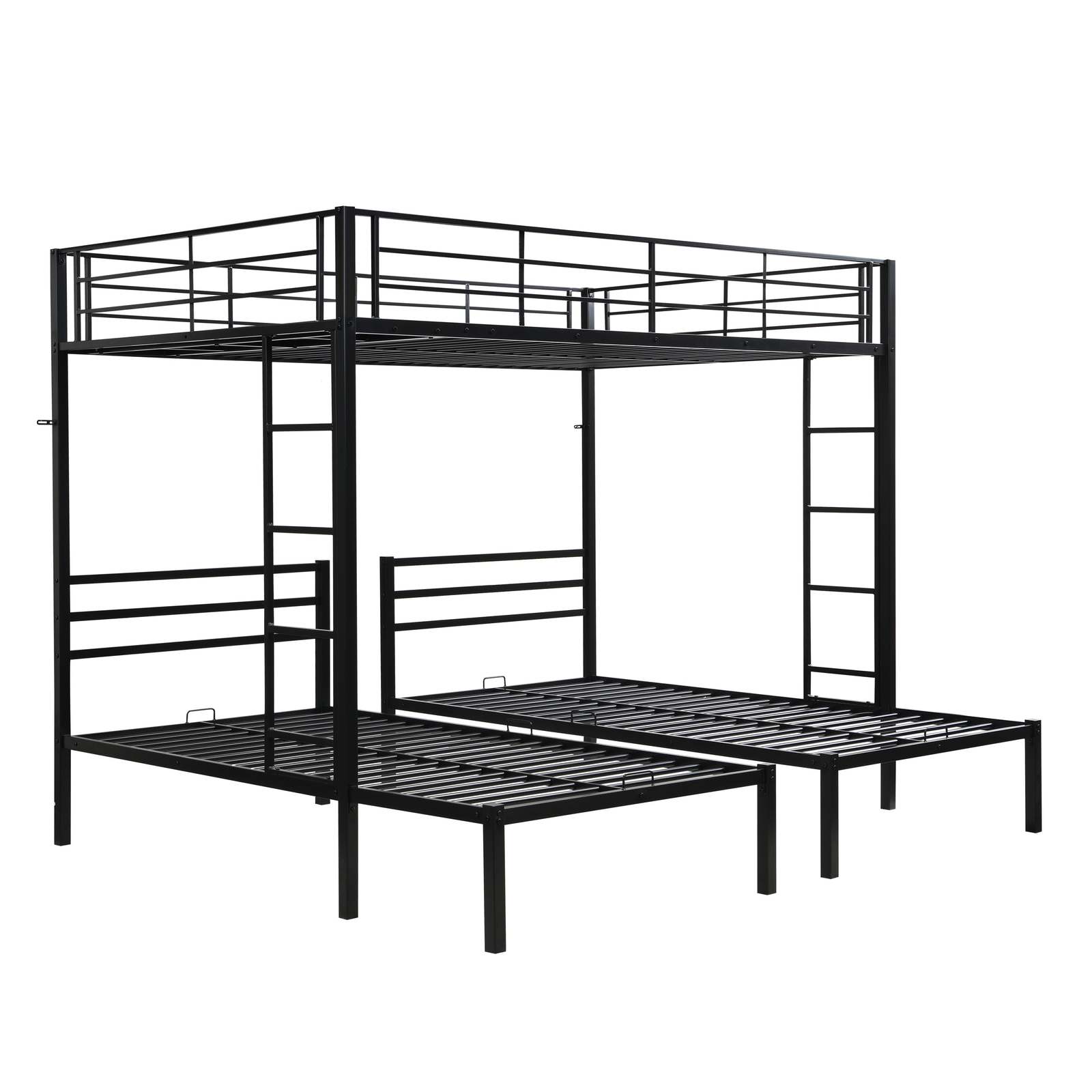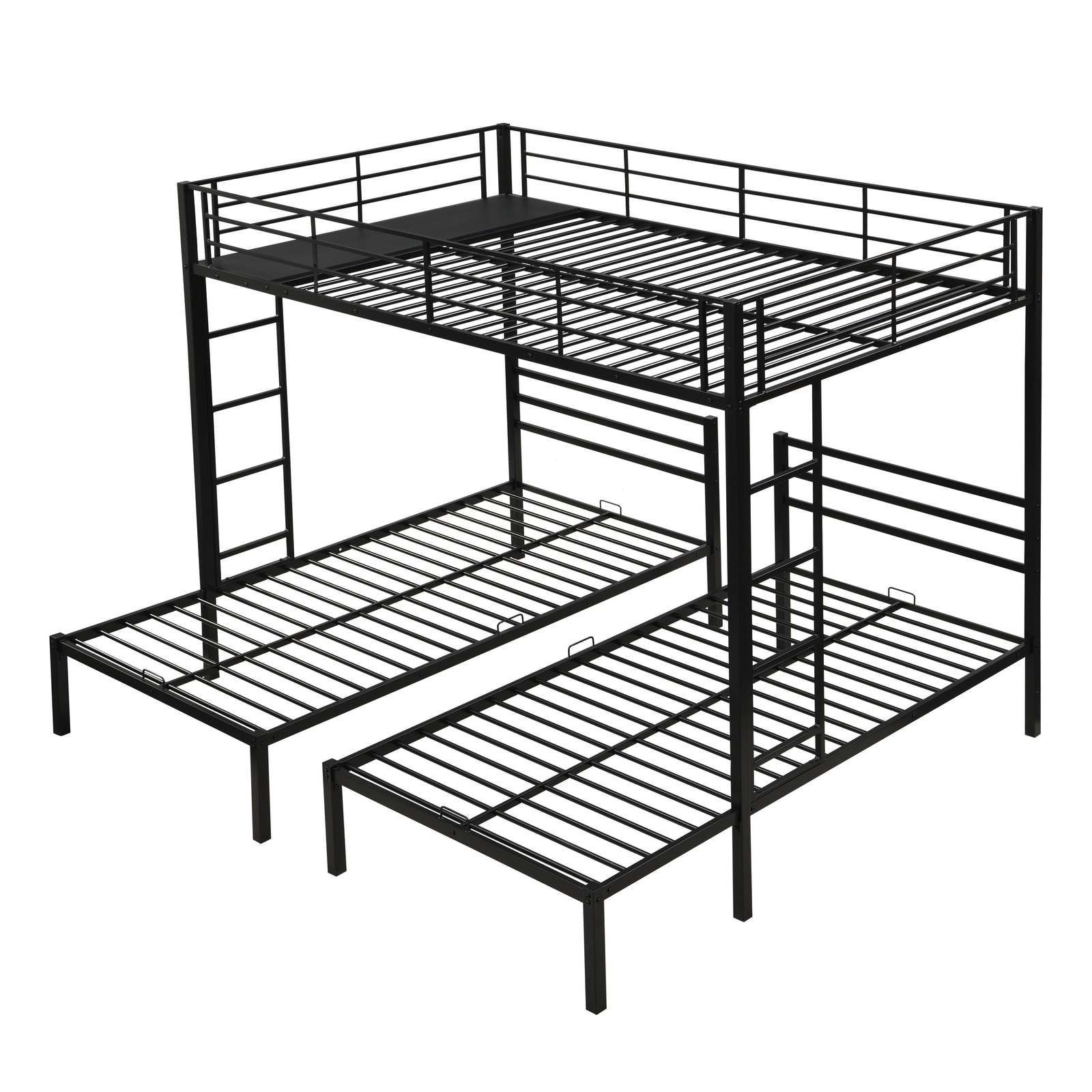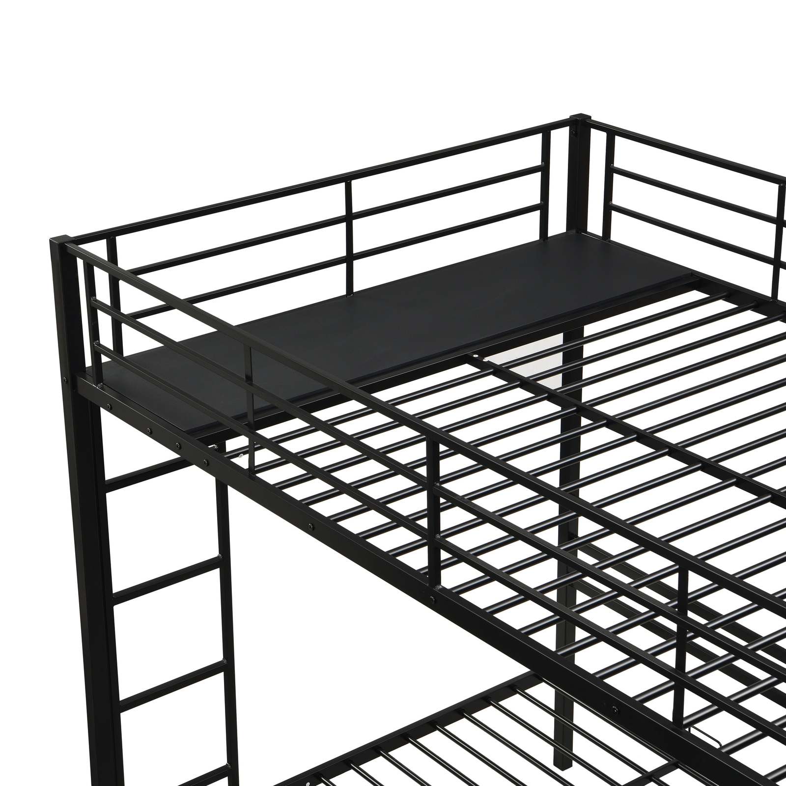 Black Modern Metal Triple Bunk Bed w/ Ladder, Safety Rail, Shelf