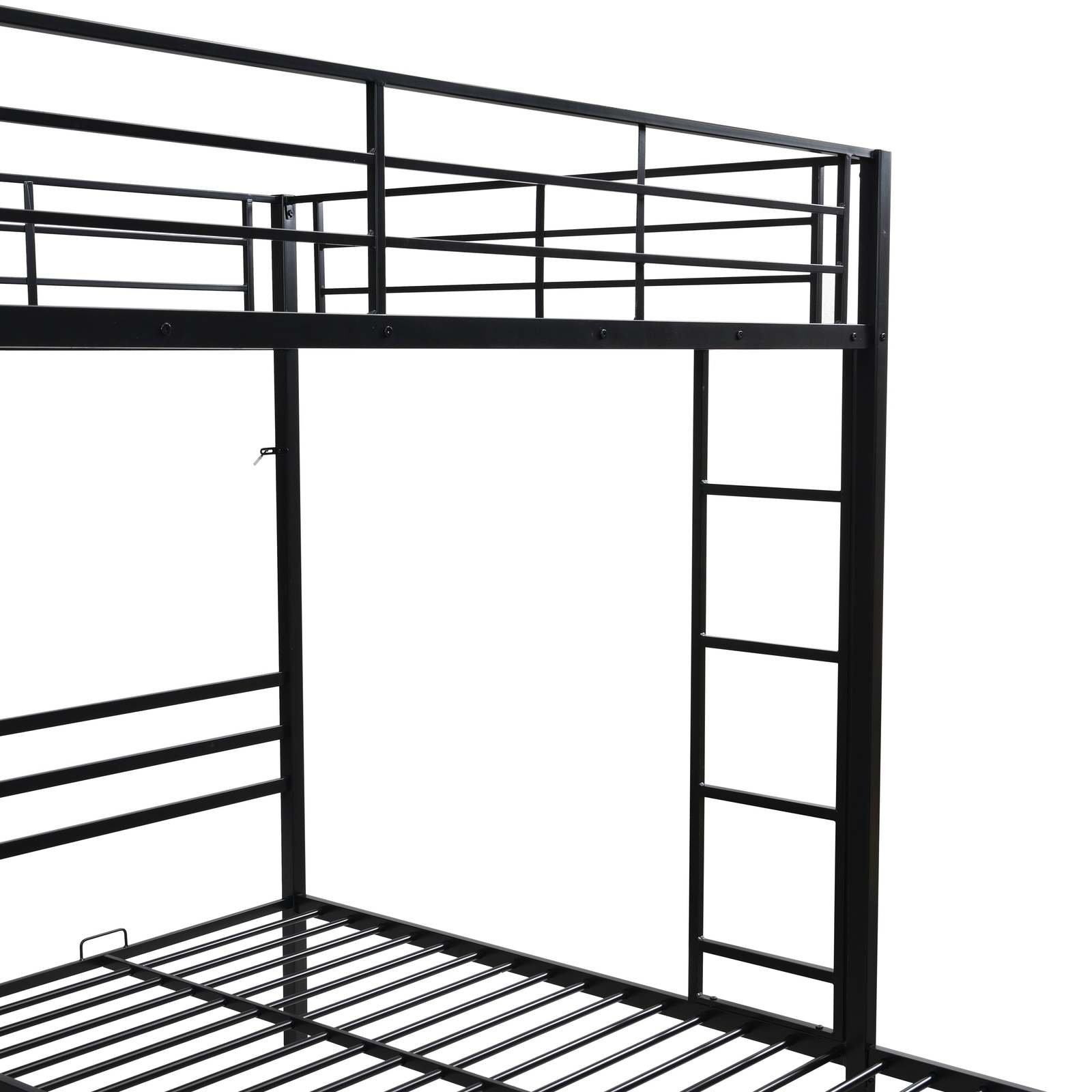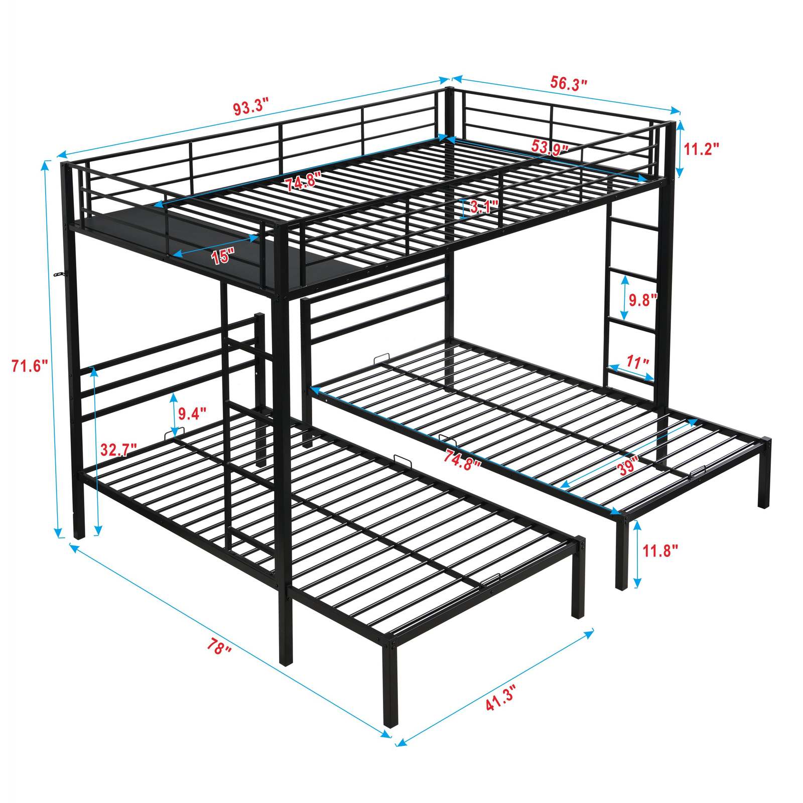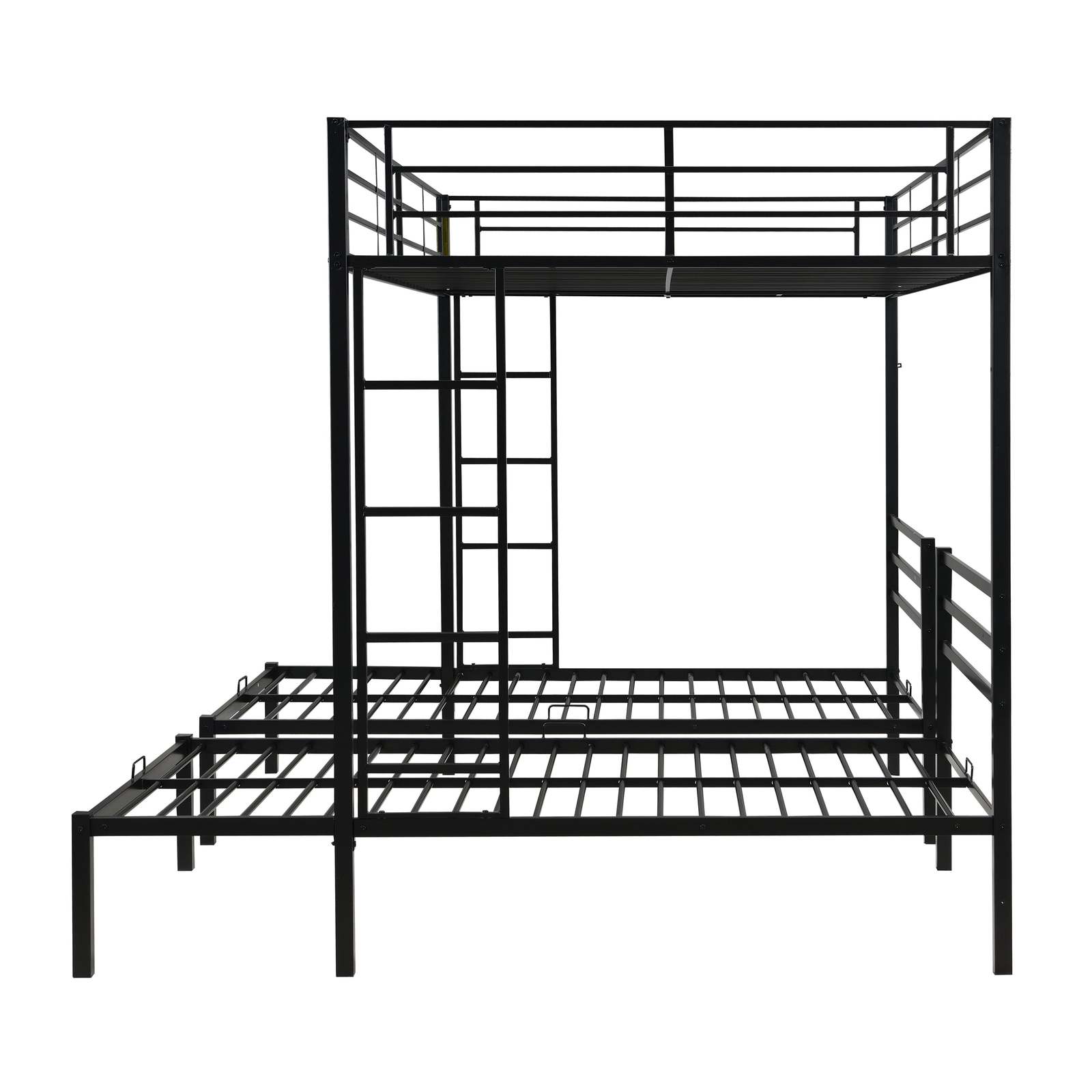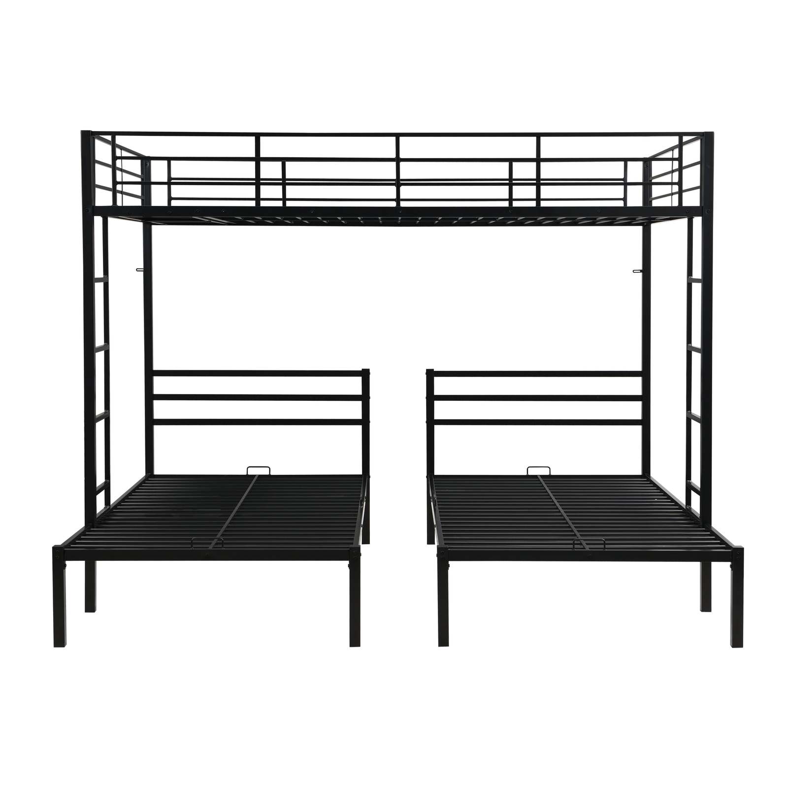 Black Modern Metal Triple Bunk Bed w/ Ladder, Safety Rail, Shelf