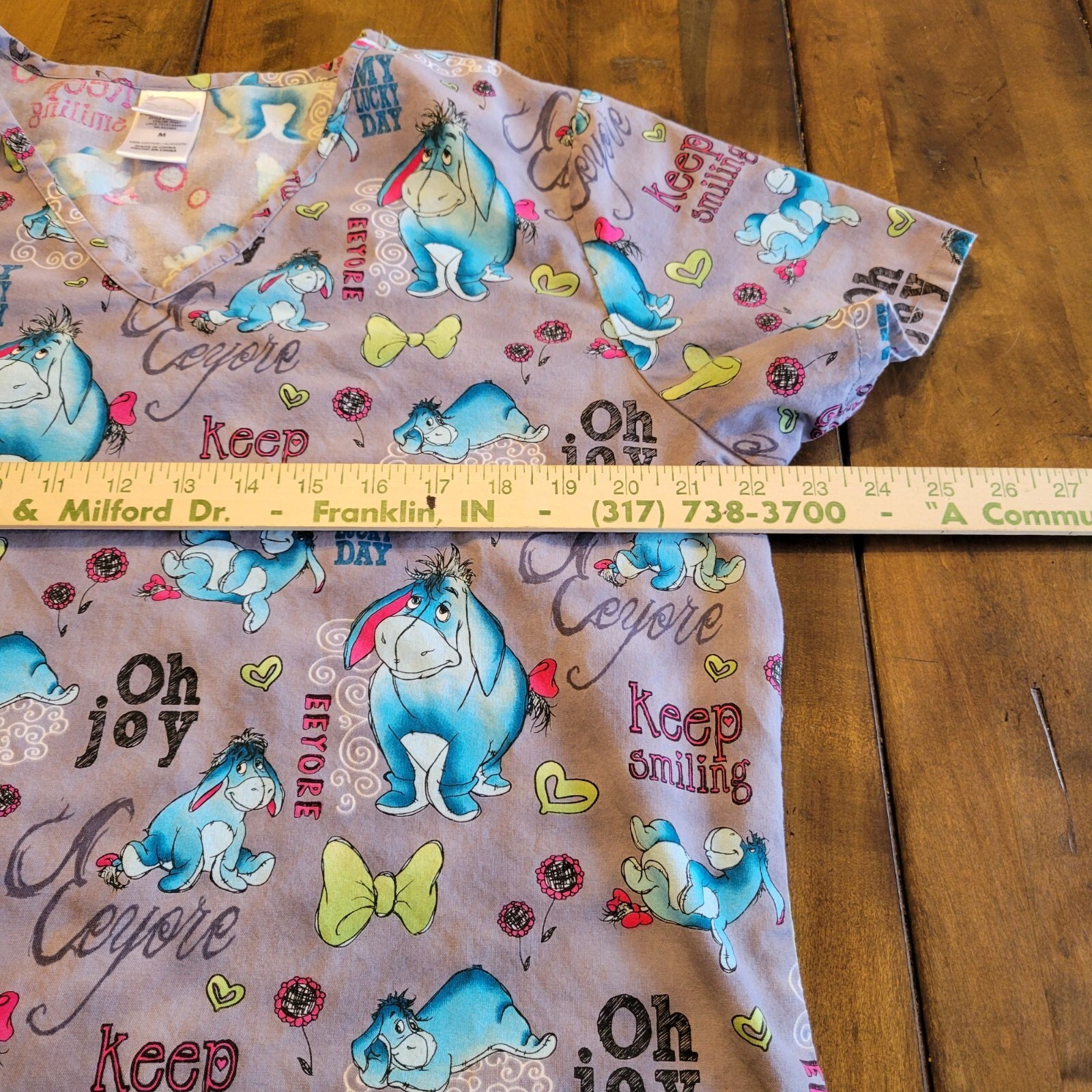 Womens M Scrub Top Eeyore Oh Joy Hospital Uniform Healthcare Winnie the Pooh Tee