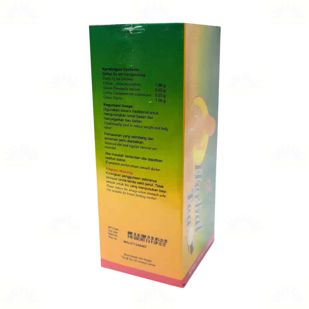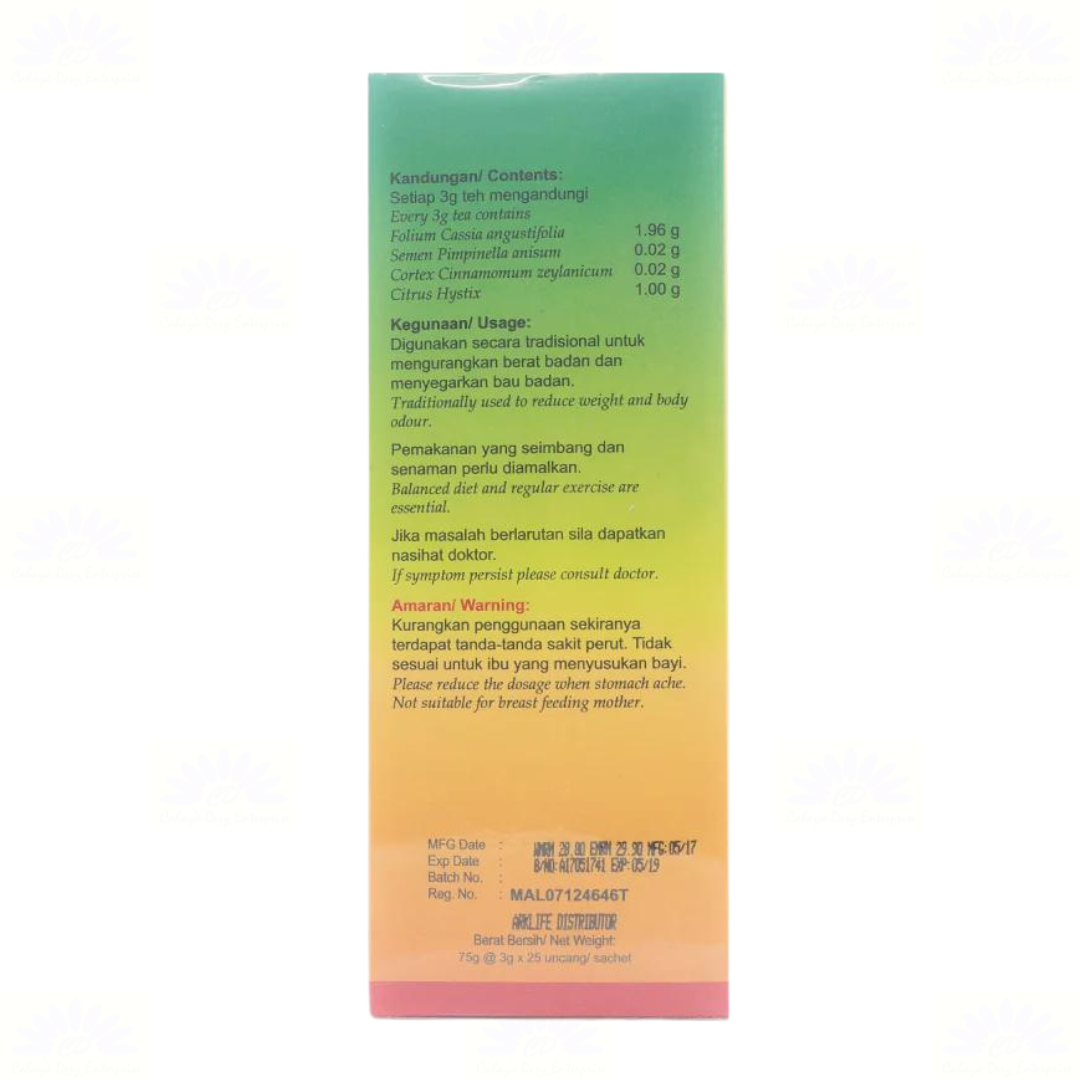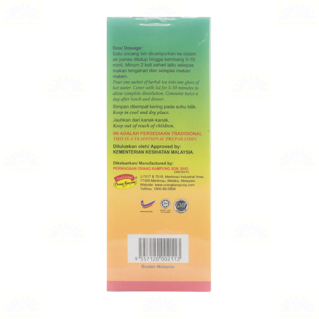 Orang Kampung Herbal Tea with Citrus is specially formulated to reduce weight and body odour, to remove toxins in the body, helping to overcome the problem of constipation, stabilize blood sugar levels and helps to improve the digestive system.