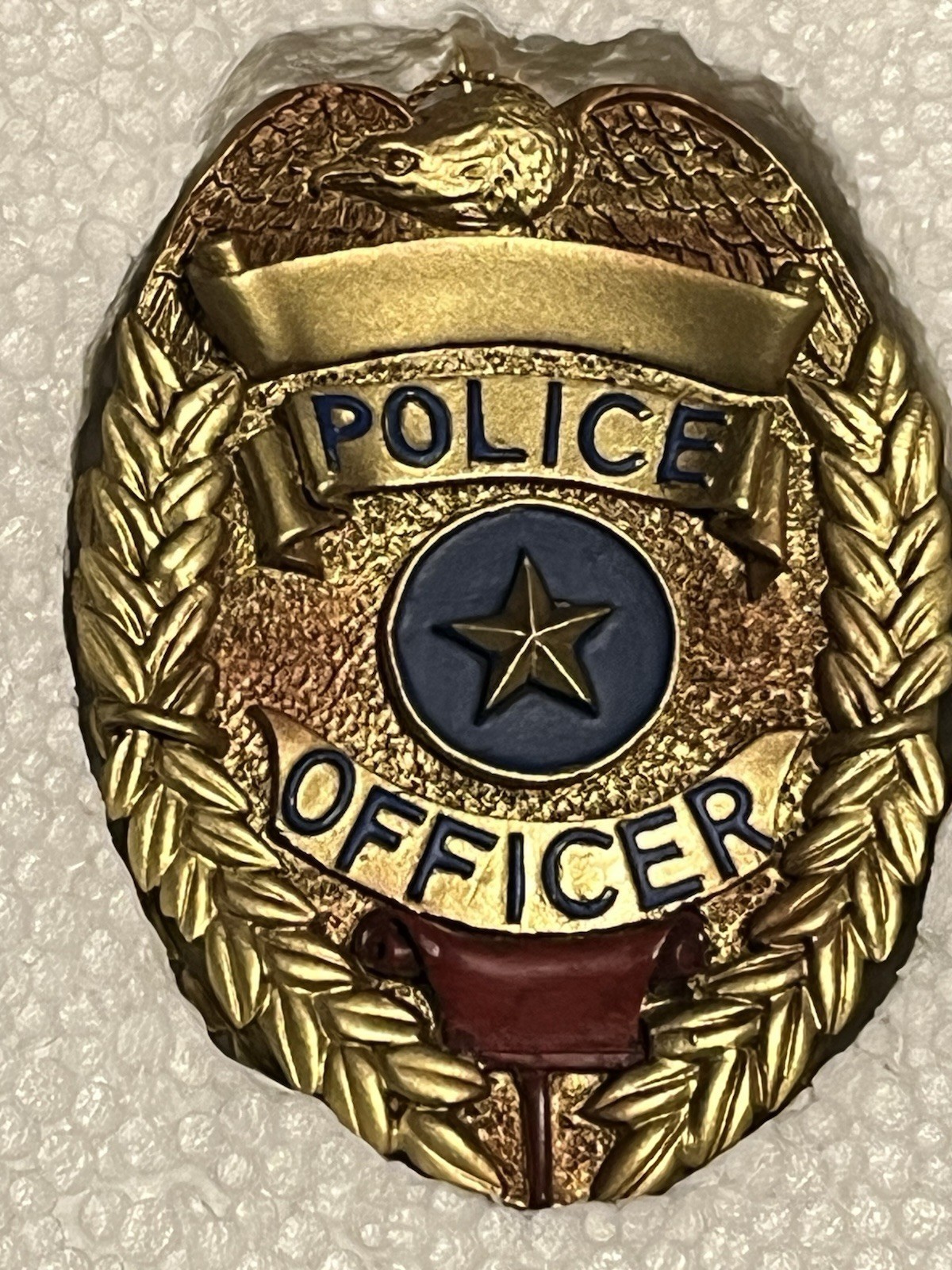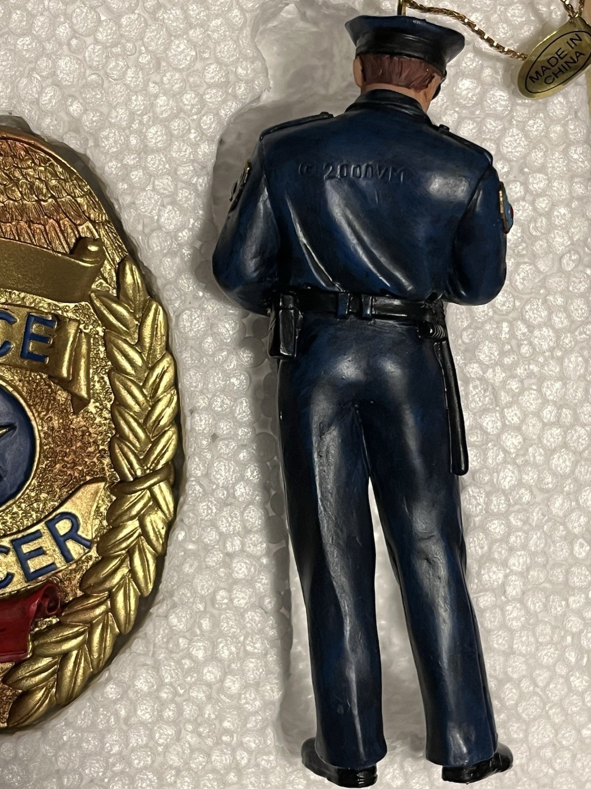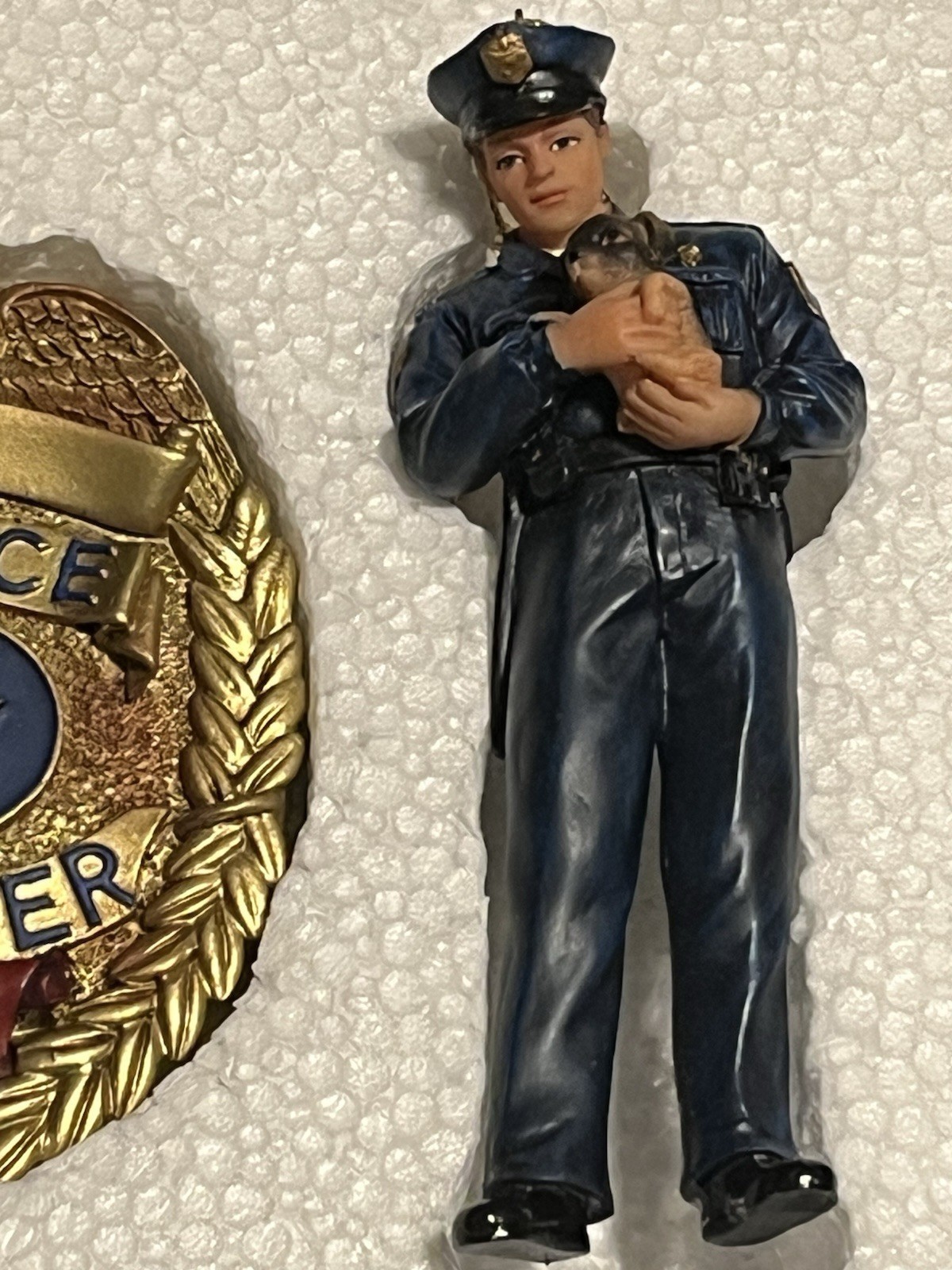 Featuring: Two policemen measuring 4 inches tall/each; and one badge measuring 3 inches long.