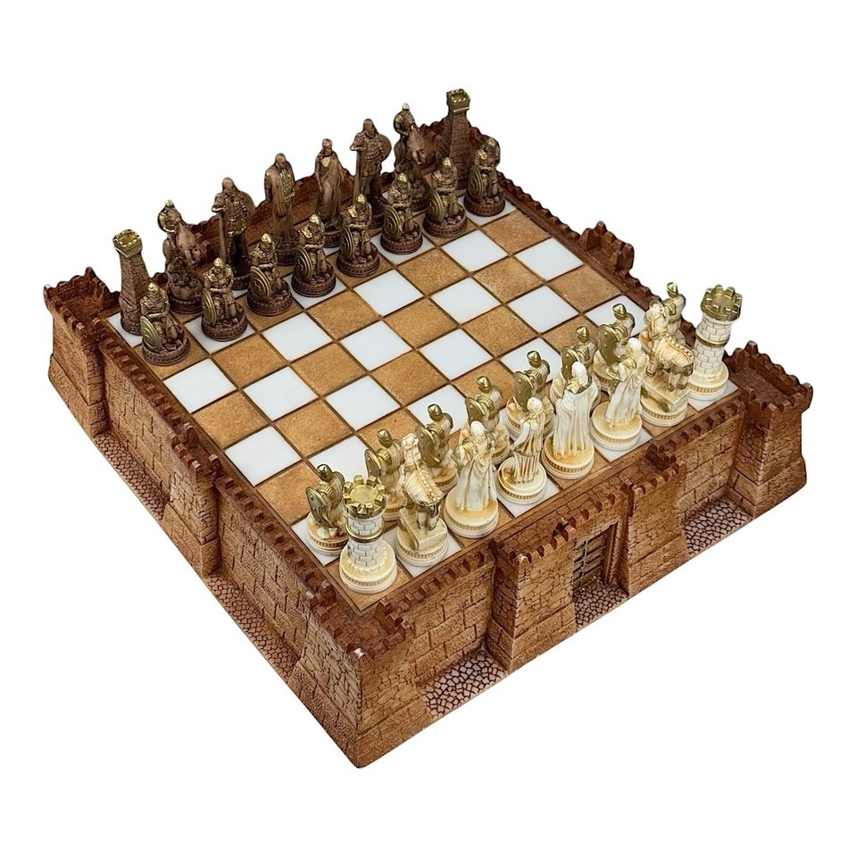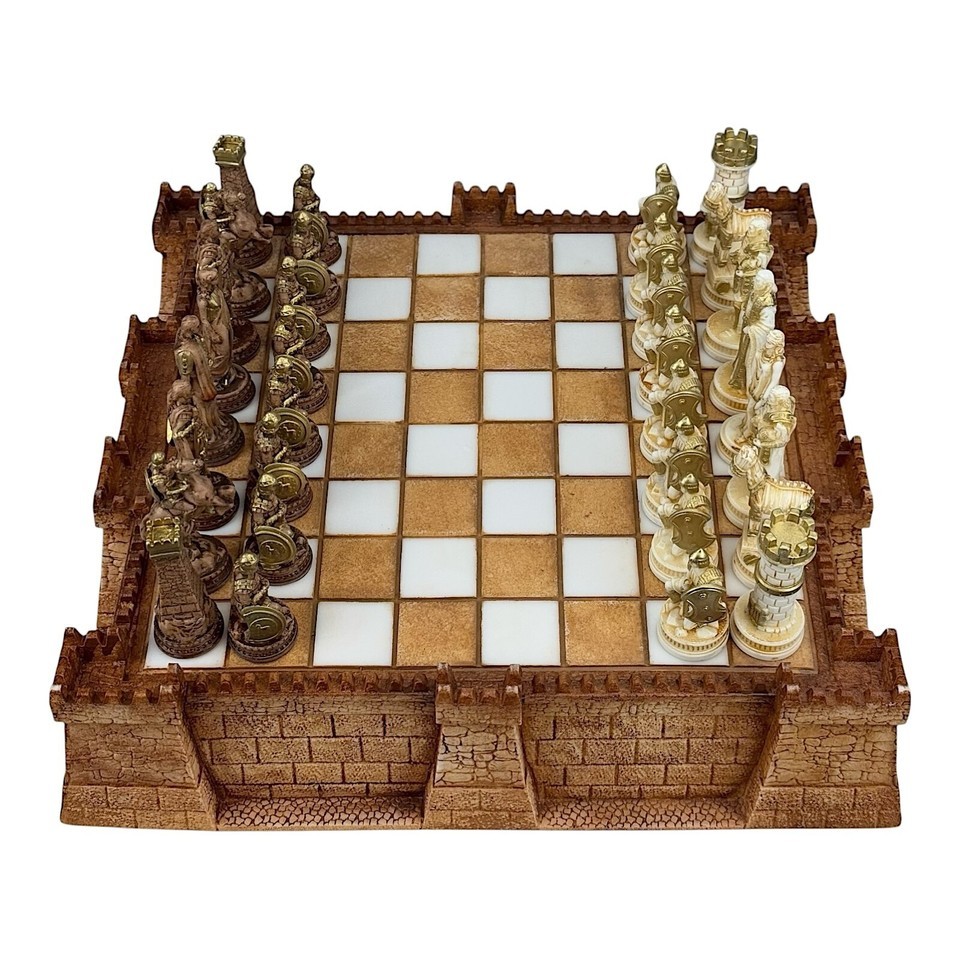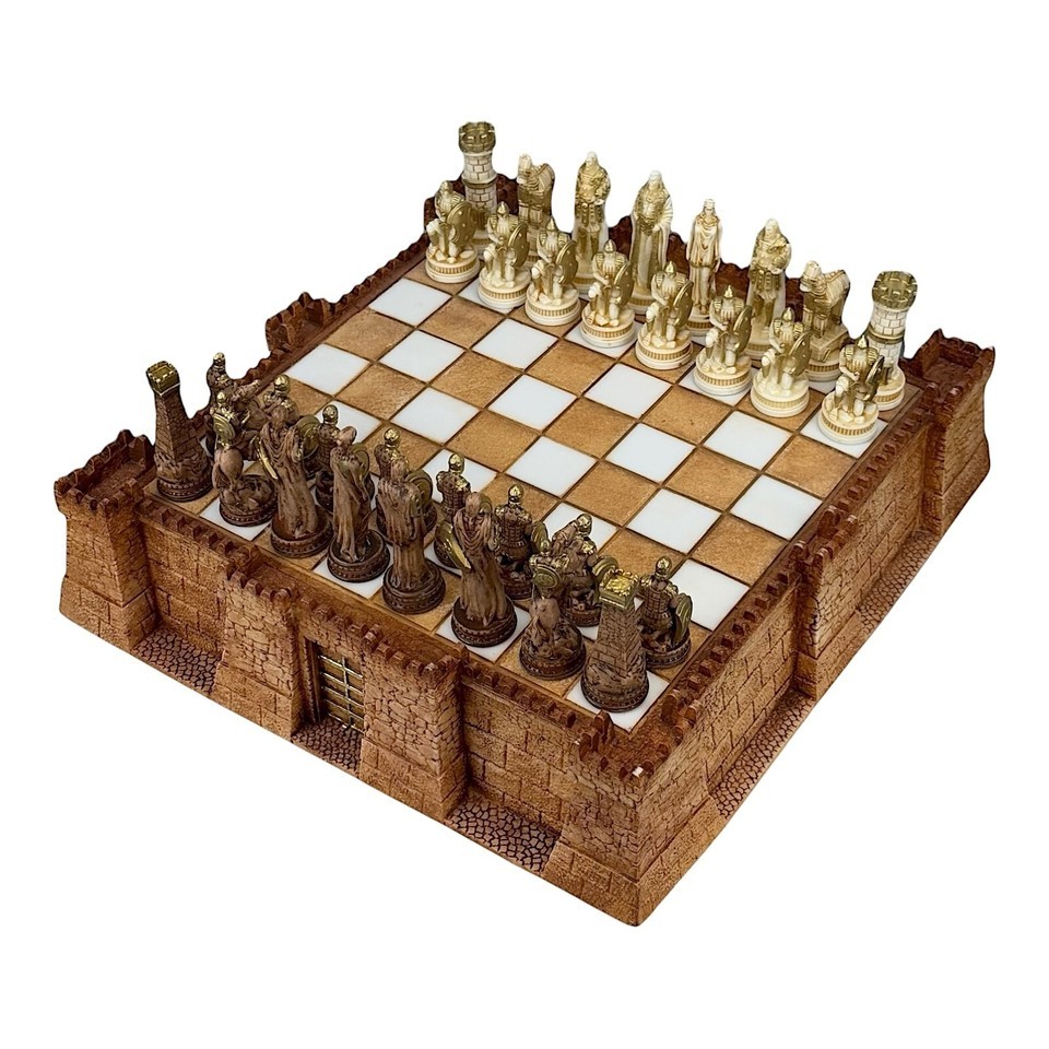 Chess Set Board Castle of Troy & 32 Pieces Trojan VS Greek Heroes Trojan War