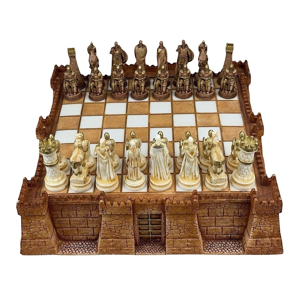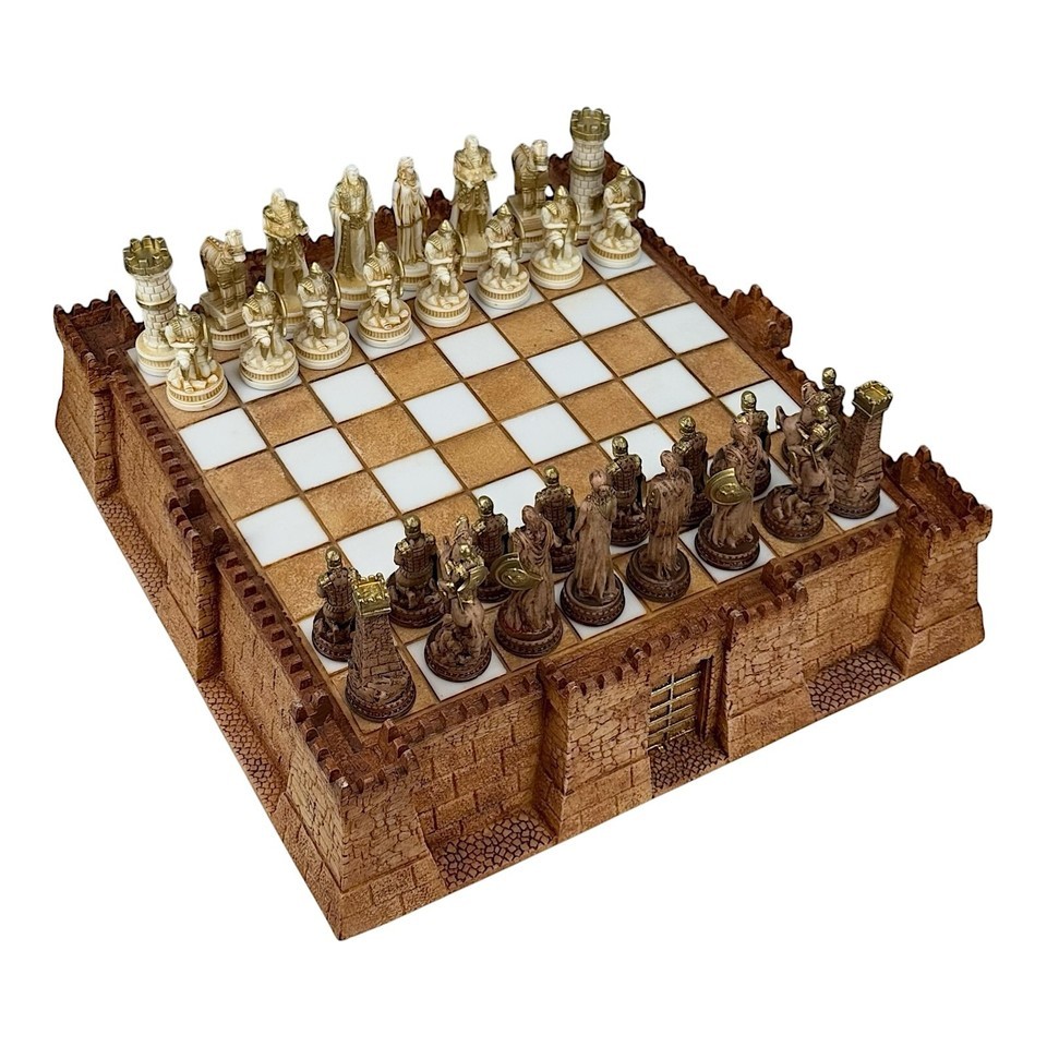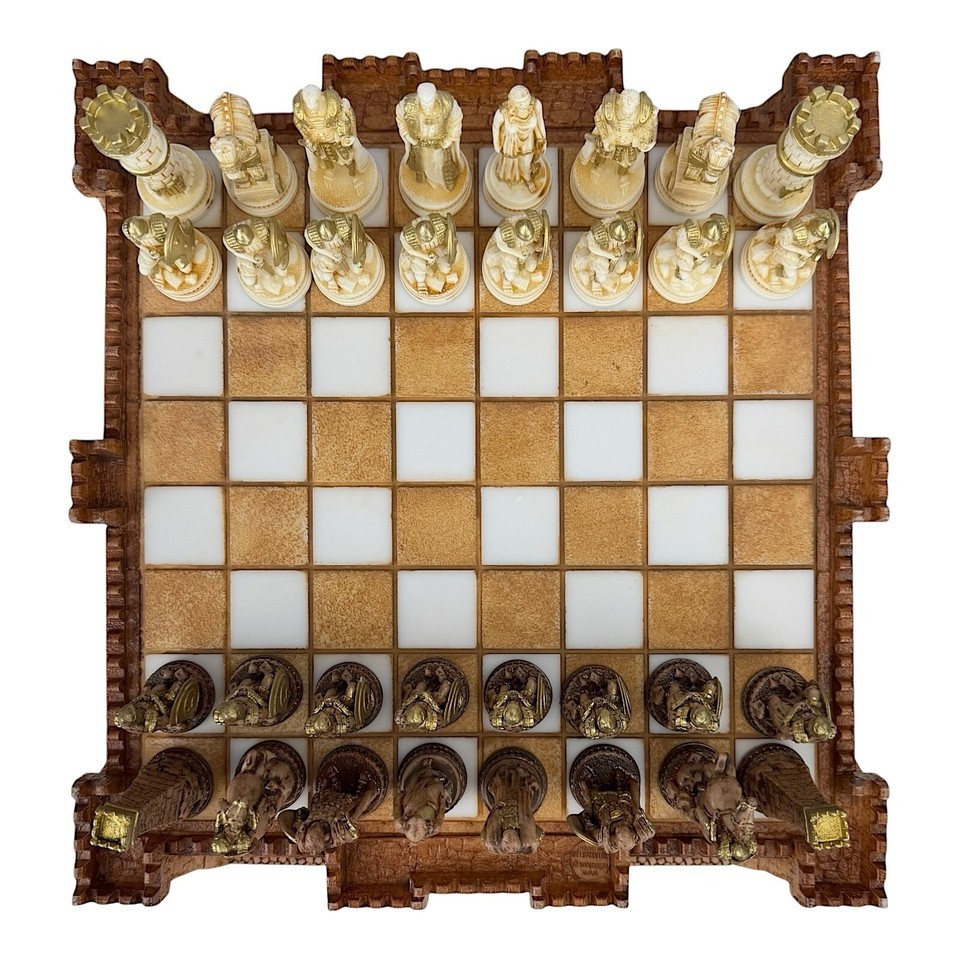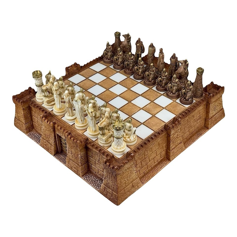 Chess Set Board Castle of Troy & 32 Pieces Trojan VS Greek Heroes Trojan War
