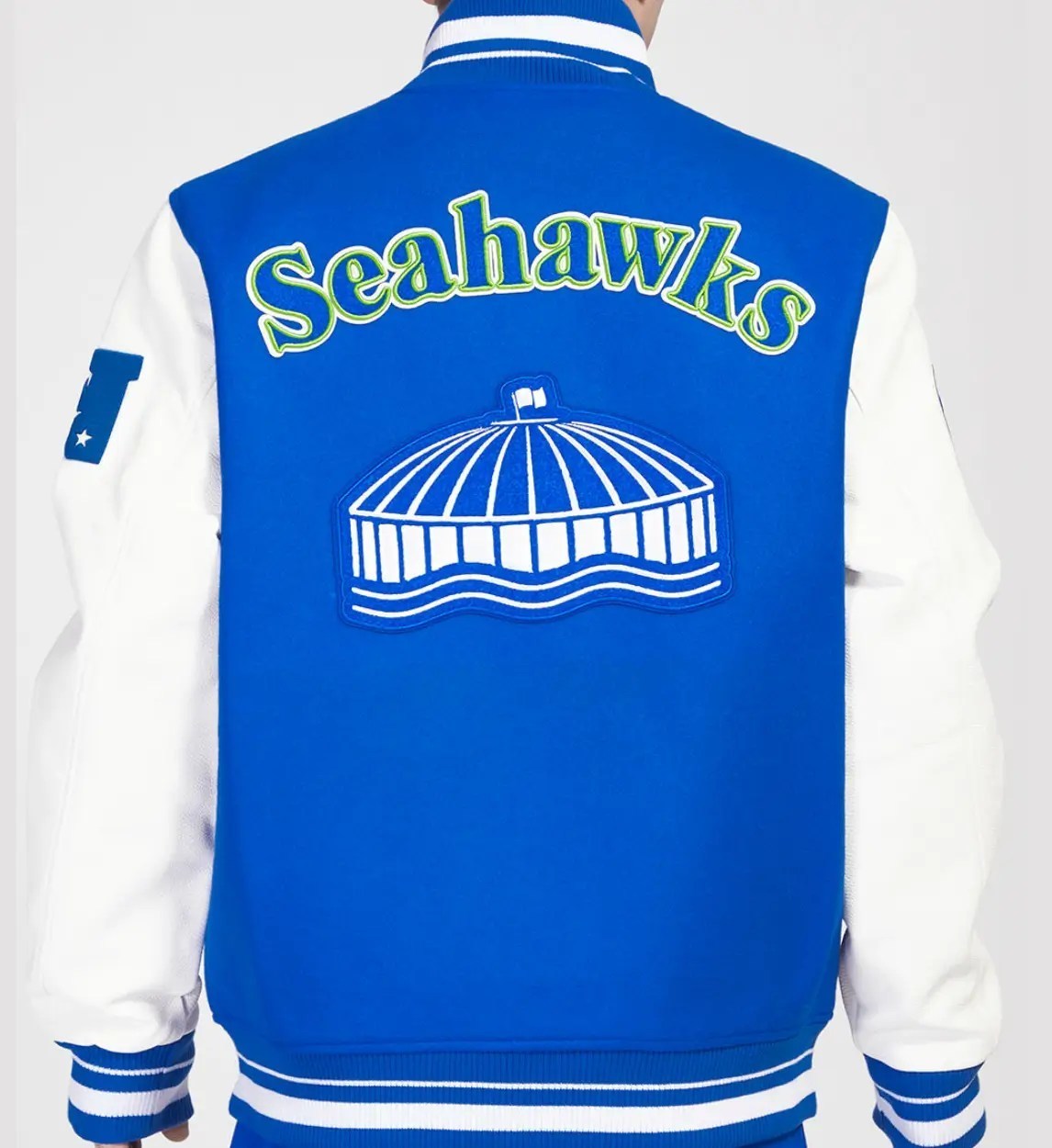 Seahawks Blue Wool White Genuine Leather Sleeves Varsity Jacket