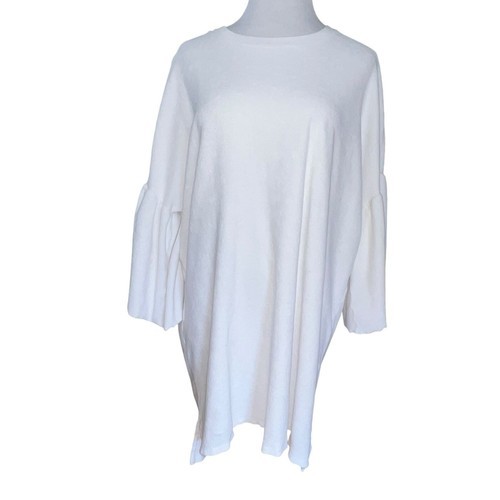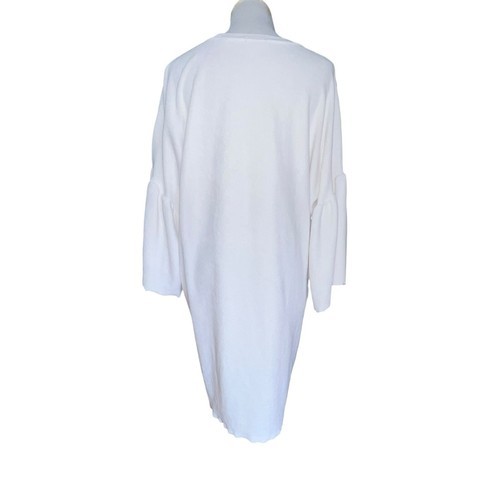 This ATM Anthony Thomas Melillo T-shirt dress is a versatile piece suitable for various occasions. The dress features a solid white color, long bell sleeves, and a round neckline. It has a pullover closure and is made of lightweight cotton material, which makes it comfortable for all-day wear.