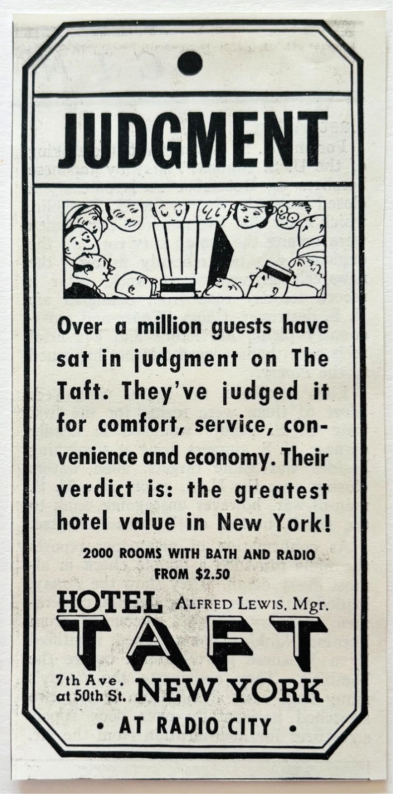 1938 Hotel Taft Advertisement Radio City New and 39 similar items