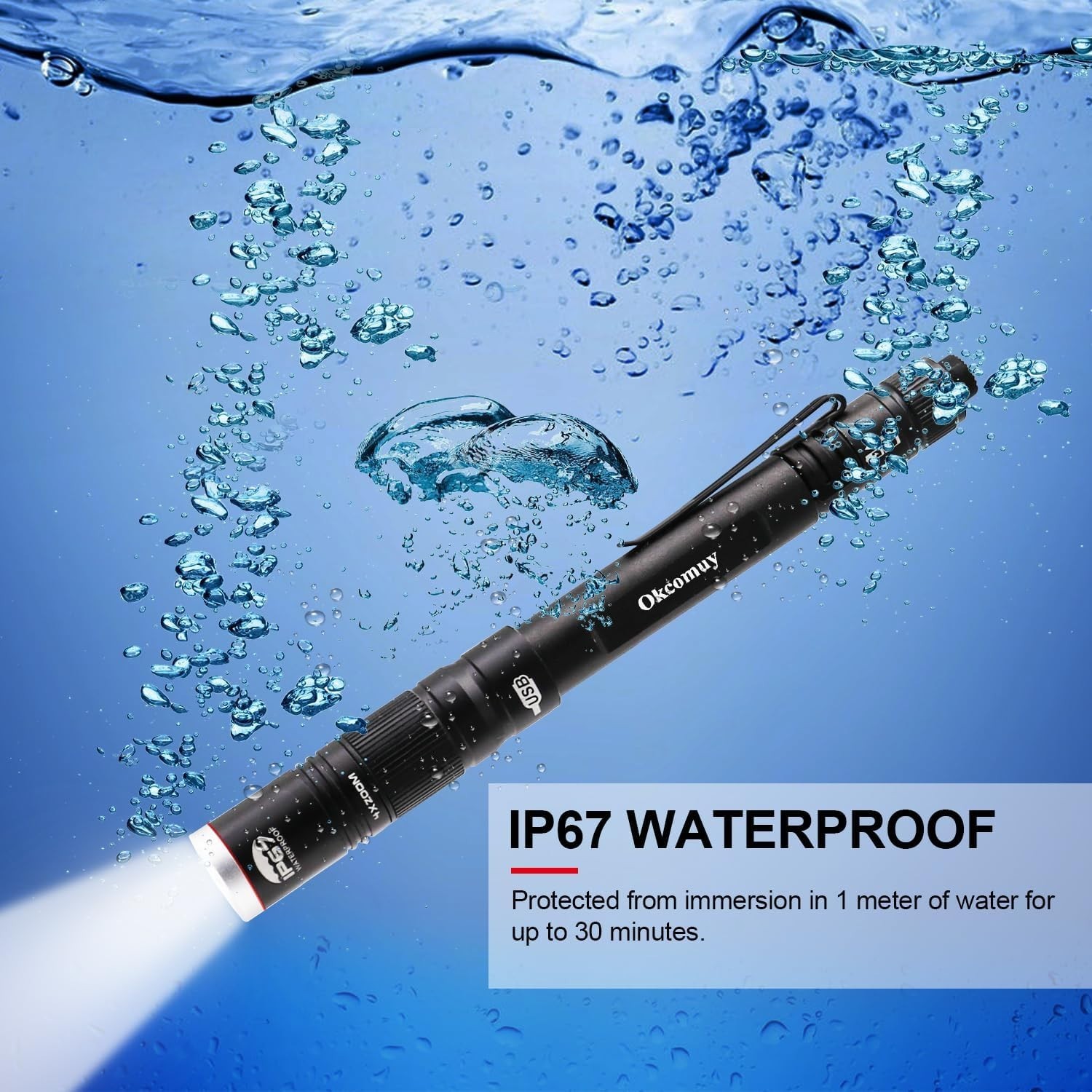 Fully Waterproof Durable: With an rating, this flashlight can withstand being submerged up to 1 meter underwater. Constructed from durable aircraft-grade aluminum, it resists scratches, abrasions, and corrosion.