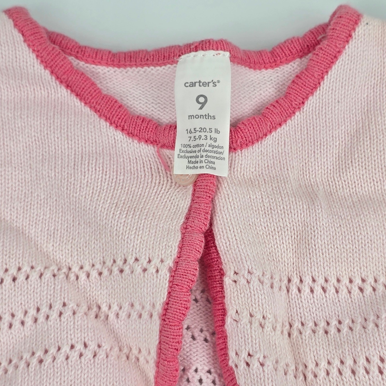 Keywords: Baby cardigan, Girl cardigan, Knit sweater, Pink cardigan, Floral embroidery, Rose embroidery, Carter's, 9 months, Baby clothes, Infant cardigan, Long sleeve cardigan, Cotton cardigan, Baby girl fashion, Spring cardigan