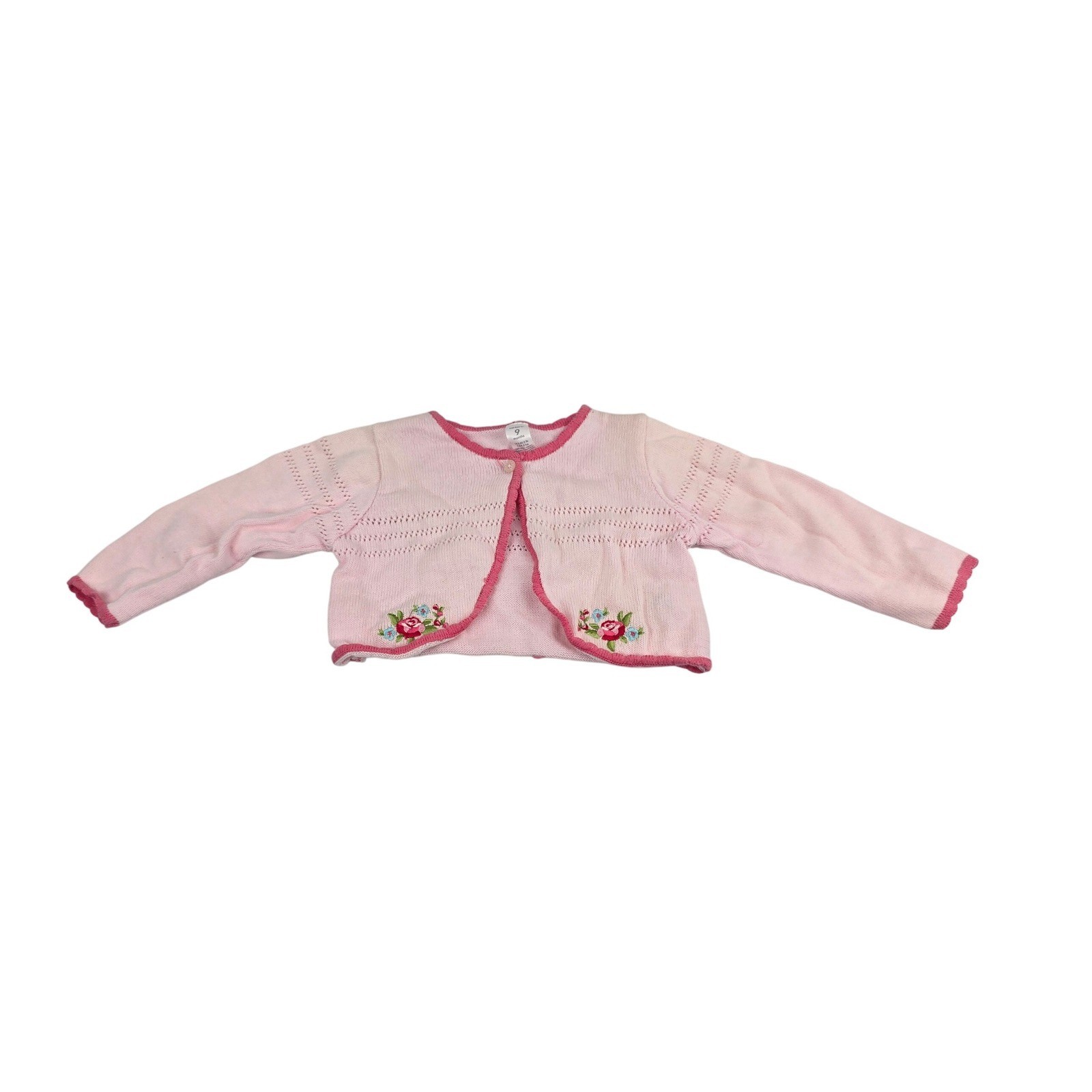 Carters Baby Girl 9 Months Pink Knit Cardigan Sweater Embroidered Rose Floral