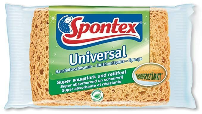Spontex's universal household sponge has proved itself for many applications. It is made of biodegradable cellulose and is particularly durable, as edge reinforcement.