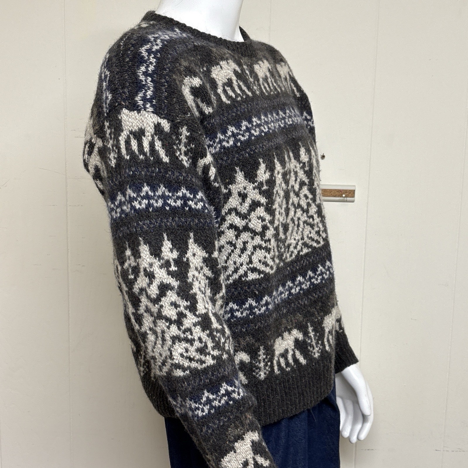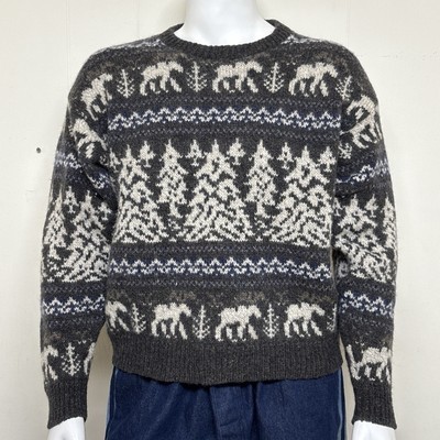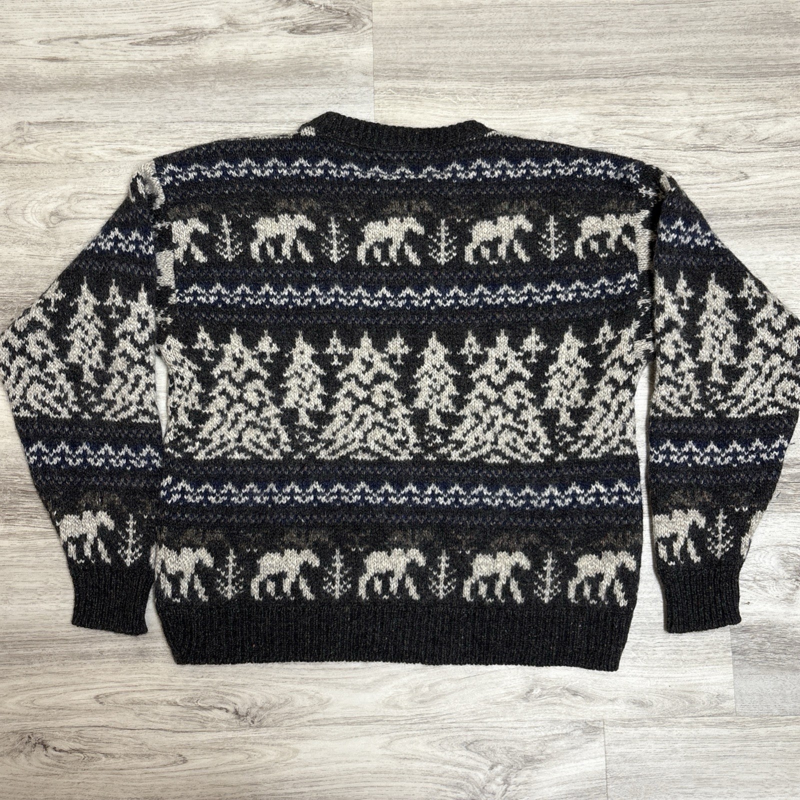 Eddie Bauer Vtg Wool Blend Sweater Mens M Icelandic Moose Evergreen Made In USA
