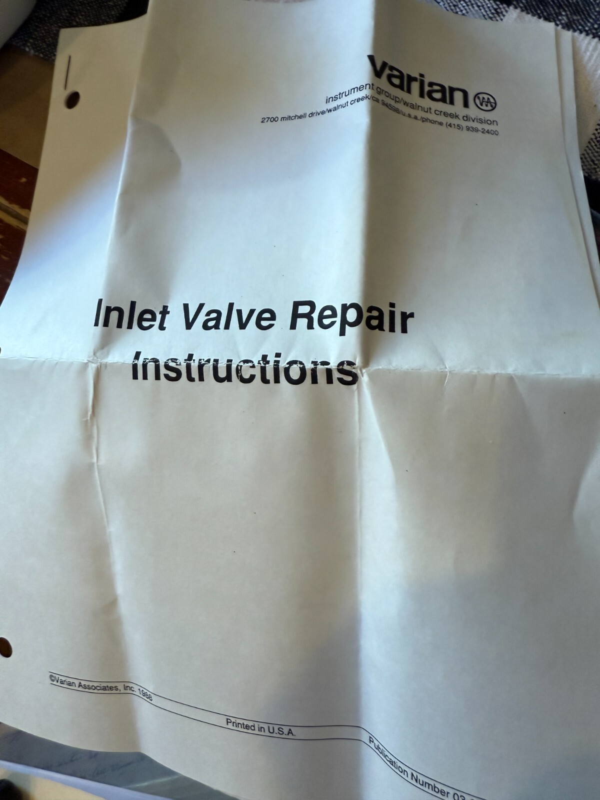 RARE Varian Vista 6000 gas chromatograph Inlet Valve Repair Kit # 03-905662-90 + This is good stuff. This is hard to find and awesome Not sure what this goes to, if you know, please enlighten me!!! This was with a bunch of parts for Varian Vista 6000 NOTE - if you can get it cheaper, let me know where and I will beat the price! FREE SHIP USA