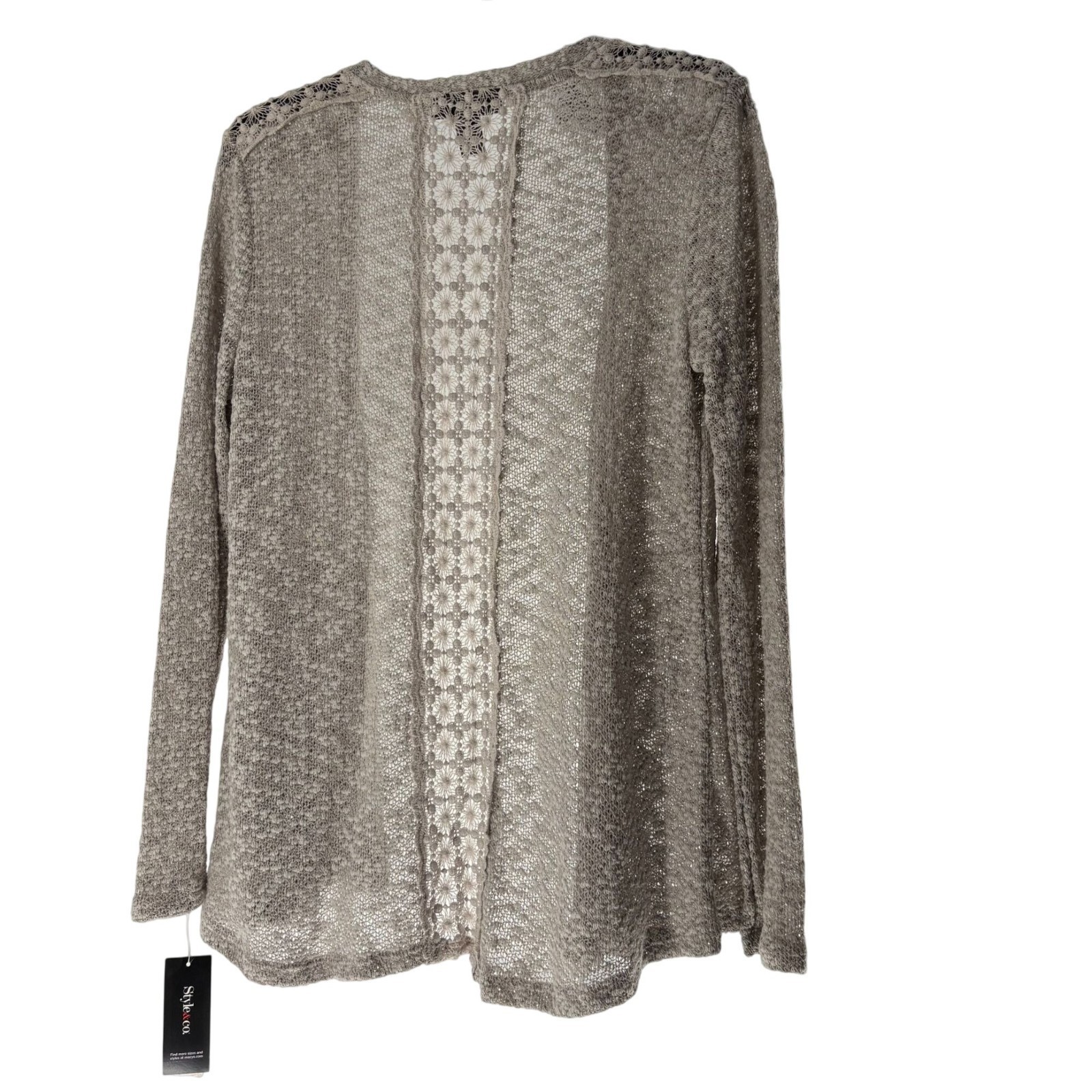 Style & Co. Small Cardigan Sweater Open Front Long Sleeve Lace Panel NWT