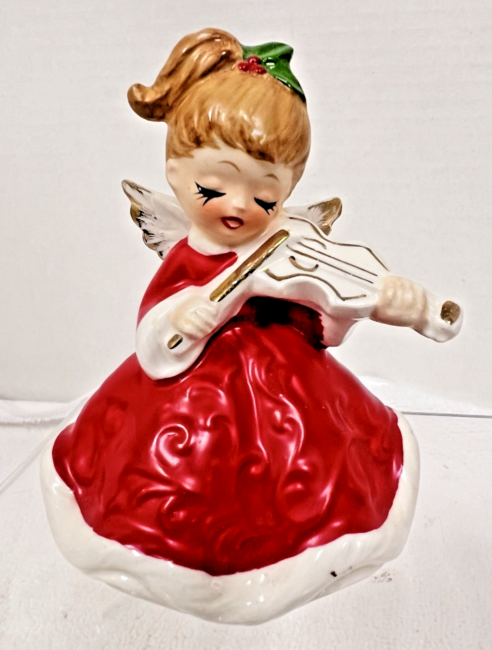 Vintage Lefton Christmas Girl Angel Brunette w Violin Figurine 3 3/4" Japan 7074 In great shape however a few small paint marks