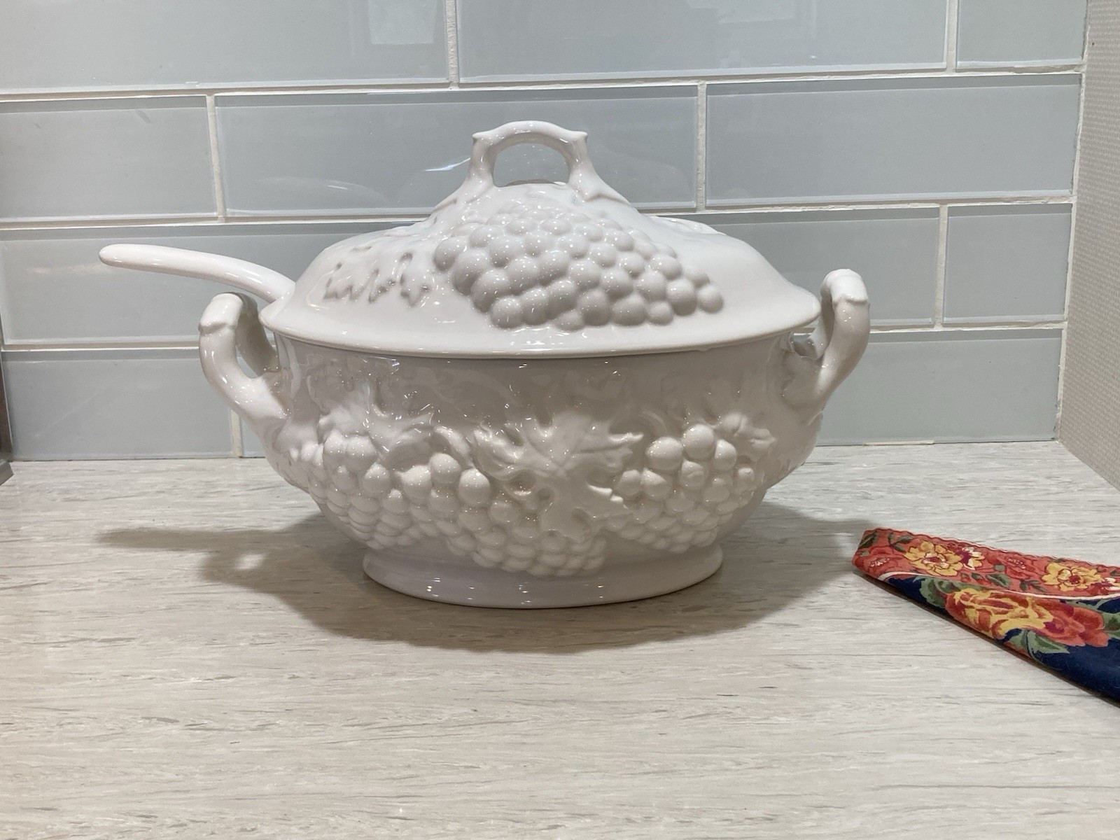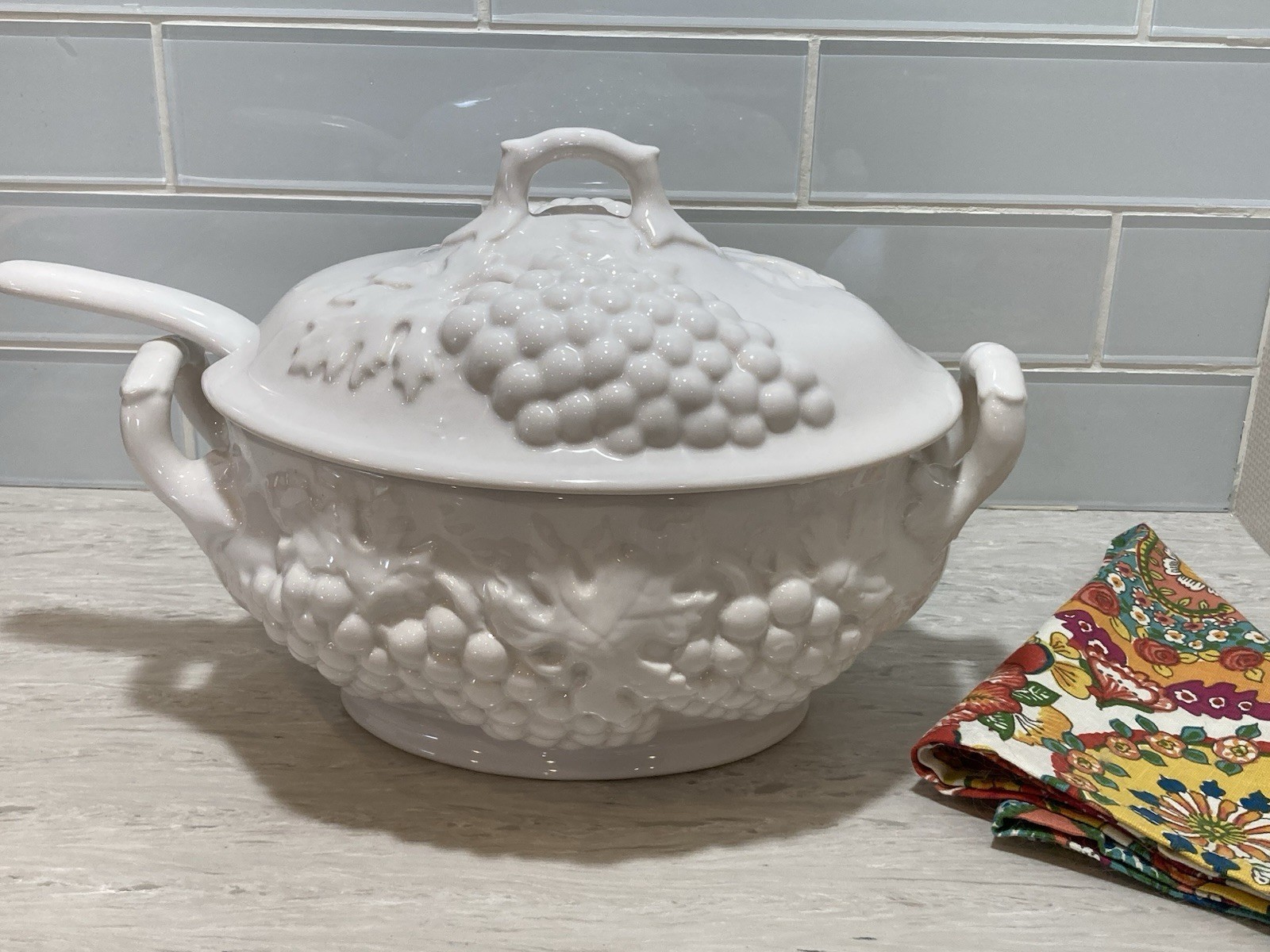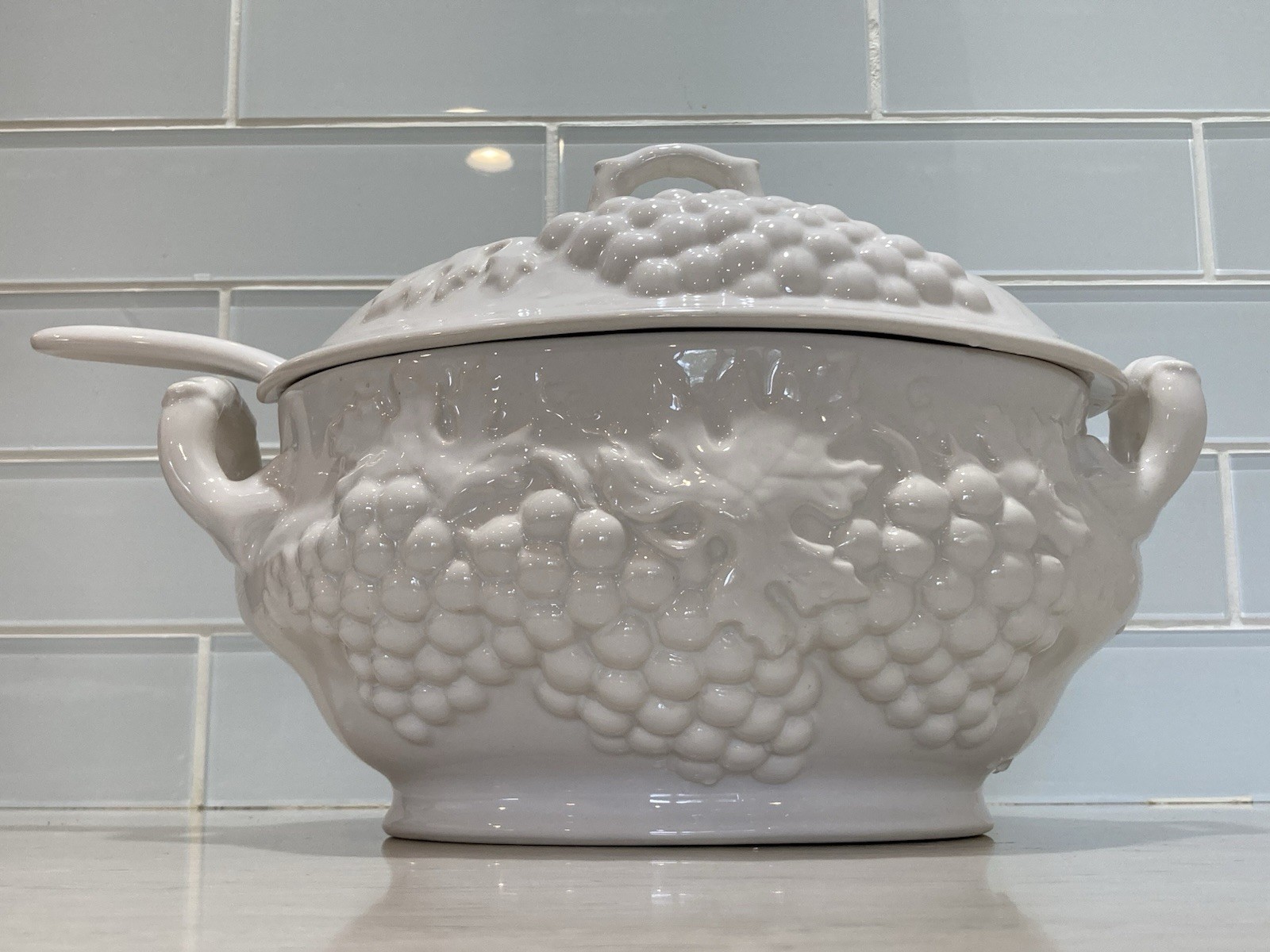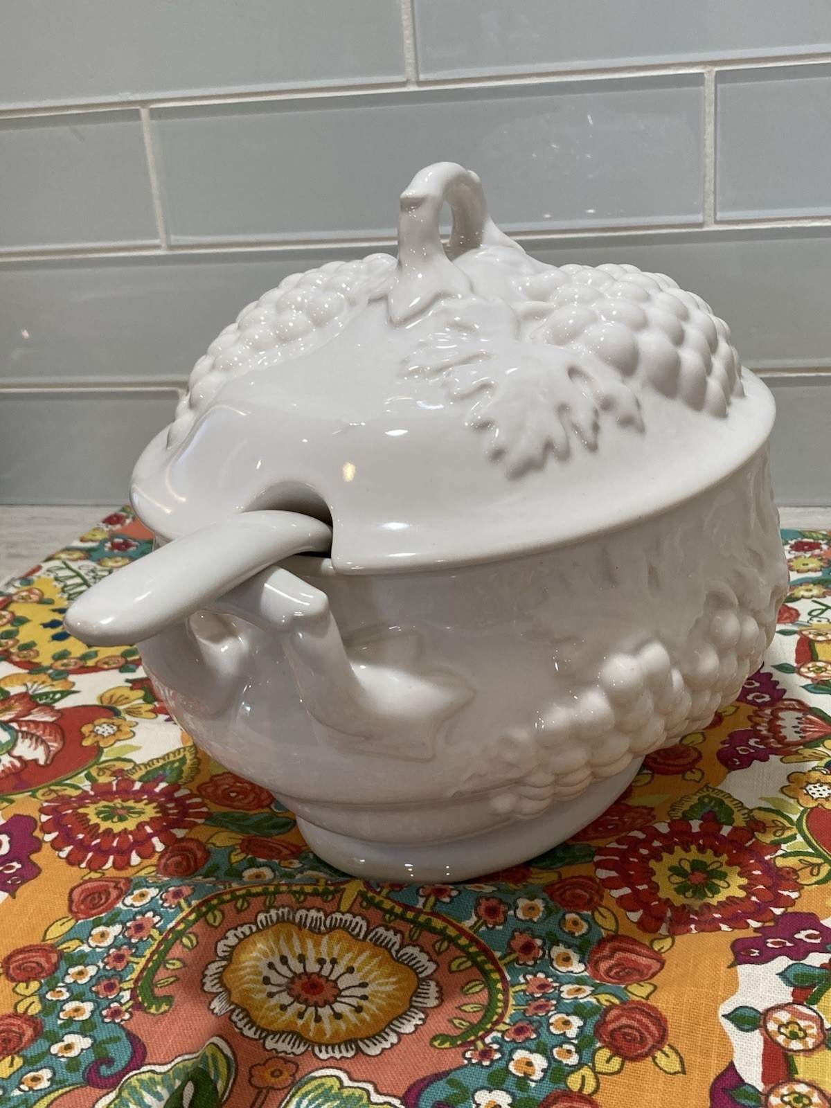 Vintage mid cent USA Ceramic White Soup Tureen w Lid & Ladle 3-4 Qt Perfect!