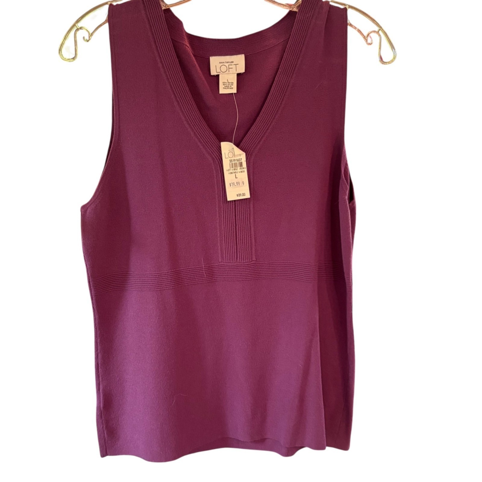 Ann Taylor Loft Womens V-Neck Sleeveless Top L NWT Raspberry Rayon/Nylon